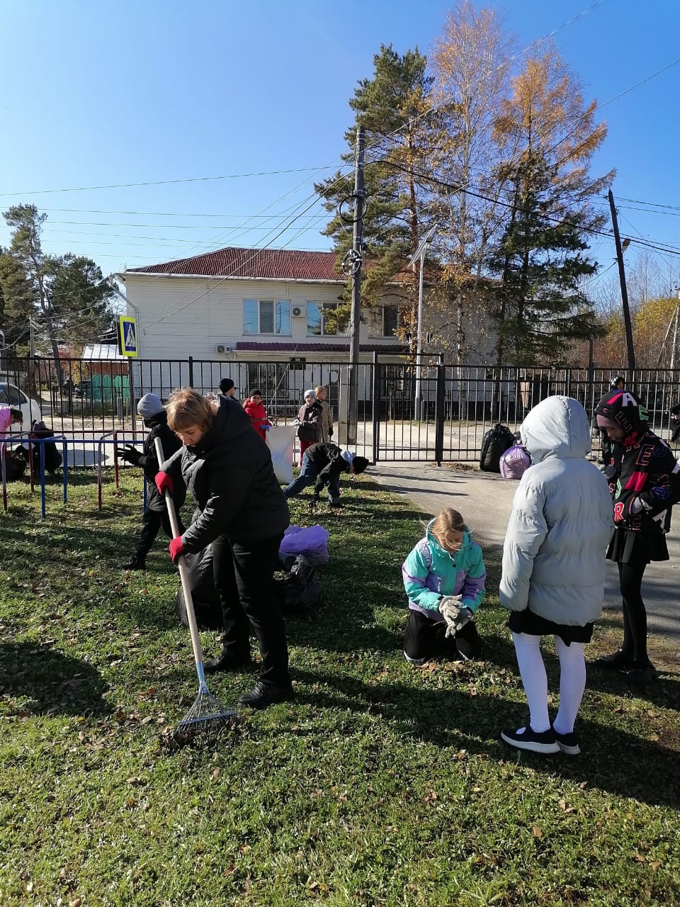 Было сделано следующее: убрали школьный двор от опавших листьев, сделали уборку в классе, помогли родителям по дому и в уборке придворовых территорий.