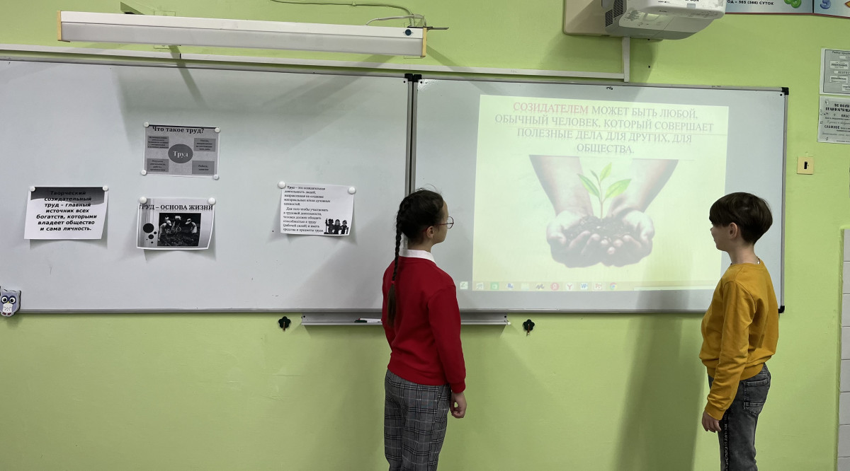 Перед просмотром прошёл классный час, на котором раскрыли понятие труд, творчество, созидательный труд.