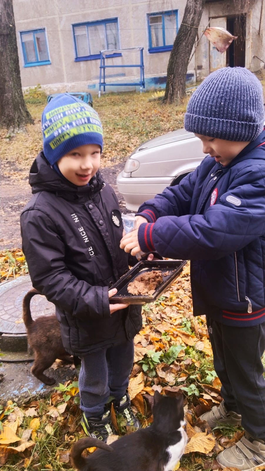 Размышления о дружбе закономерно привели к мысли о тех, кто особенно нуждается в помощи и поддержке – о бездомных животных. Сочувствуя кошкам и собакам, лишенным дома и заботы, ученик решил протянуть им руку помощи, вместе со своими друзьями. Инициативу поддержала мама, закупив корм для животных. Радостно было видеть заинтересованность в глазах детей и их искреннее желание помочь слабым и беззащитным.
