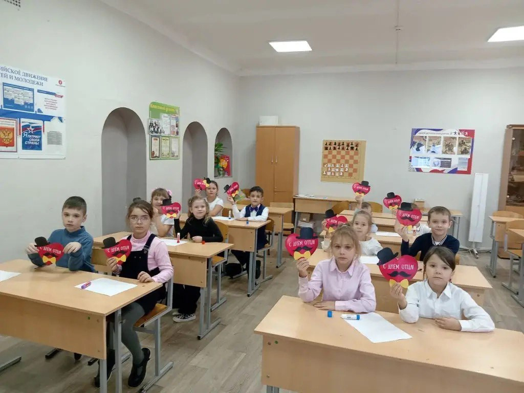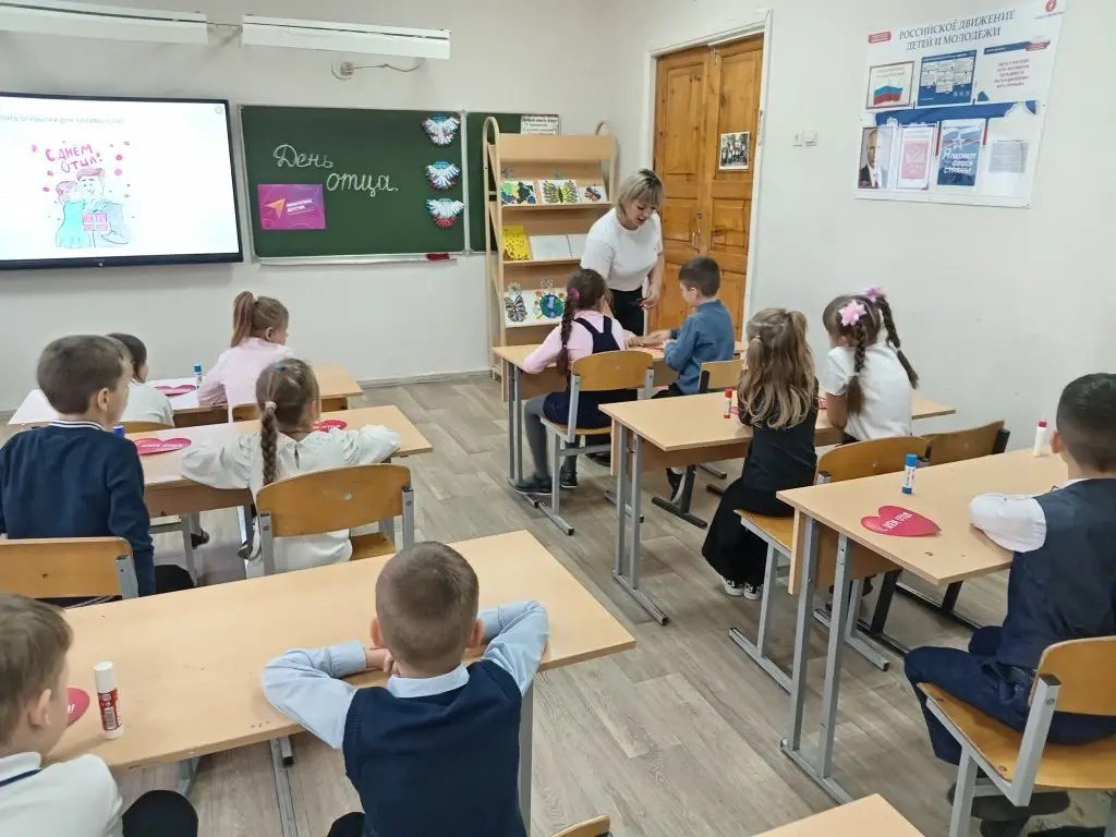 И ещё одно мероприятие. Советник директора по воспитанию в предверии праздника "День отца" провела мастер-класс по изготовлению открыток. В работу дети вложили всю теплоту души и отзывчивость ,и поздравили своих родных людей.