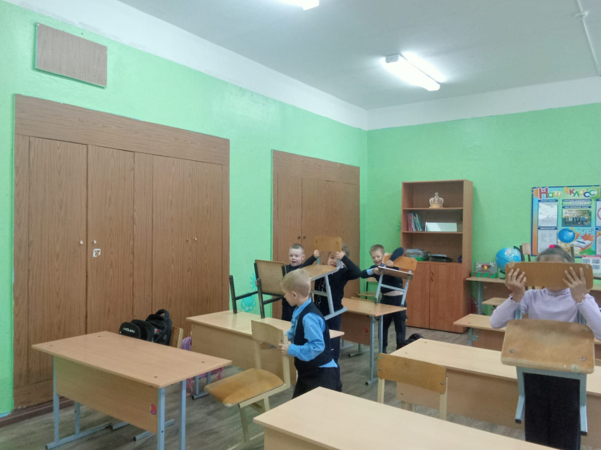 Первоклашки просмотрели фильм " Чистодей", который учит трудолюбию. После просмотра и обсуждения, ребята пришли к выводу, что нет таких профессий, которых можно было бы стесняться. Все профессии хороши и почётны. Дети подумали и решили , что они тоже любят и могут помогать окружающим. Было решено убрать территорию при школе и помочь техническому персоналу в уборке класса. Все остались довольны!!!