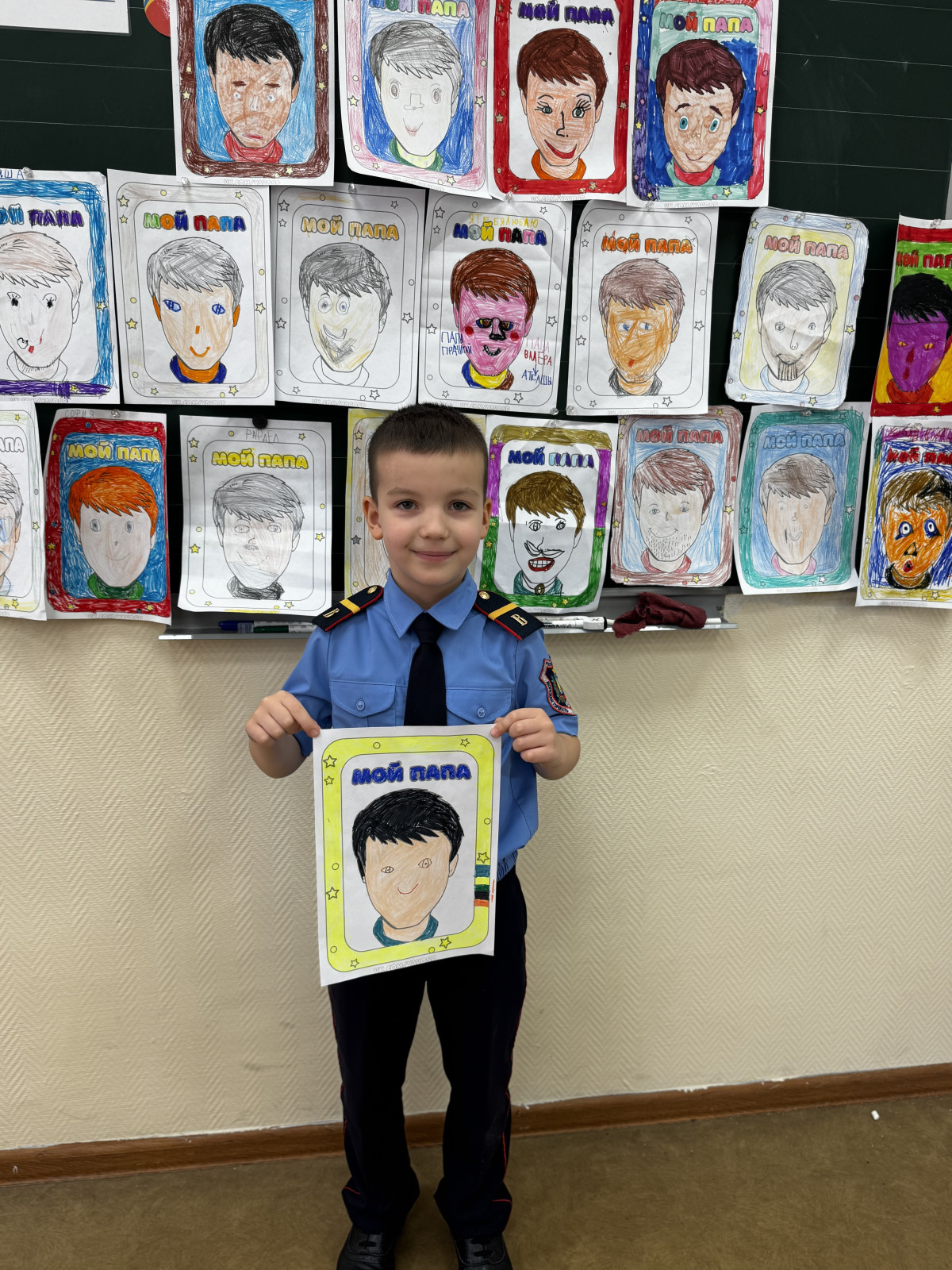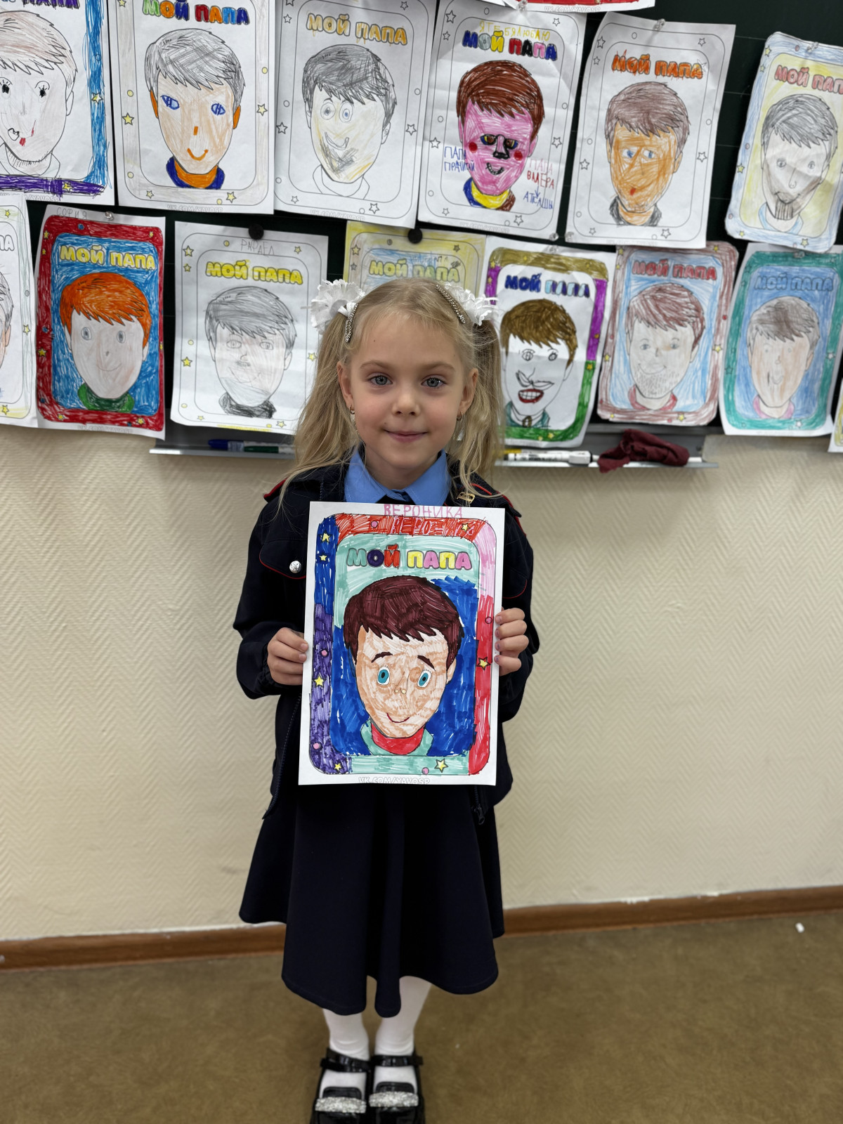 После просмотра фильма ребята предложили сделать небольшой подарок ко Дню отца с целью порадовать близкого человека. Совместно с учителем (Сафоновой И.С.) подготовили порты своих пап на заранее подготовленных шаблонах.