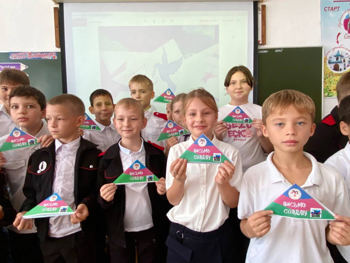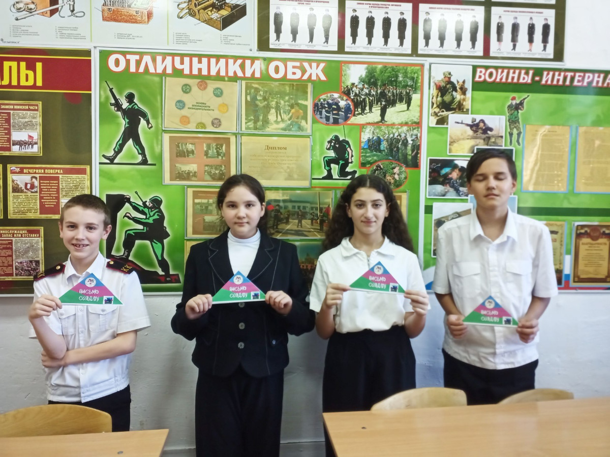 Ребята рассказали о своих планах старшеклассникам, ребята в младшие классы и они тоже активно подключились к этой акции, написать письмо солдату, решили передать непосредственно в руки военнослужащего который приехал в отпуск.