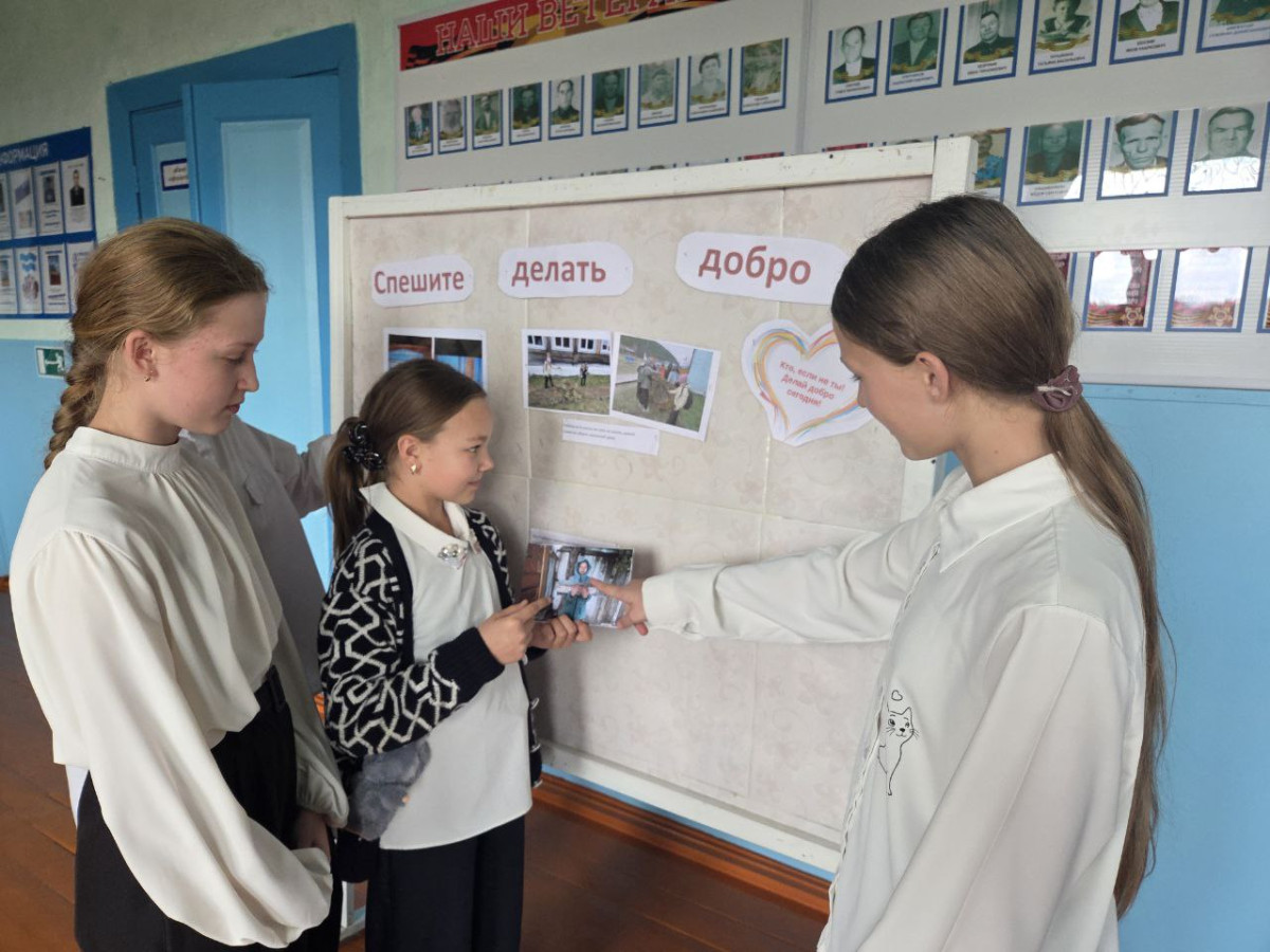 Следующий этап - соцальную практику - обсуждали долго, все никак не могли придумать что-то новое. "А какие добрые поступки вы наблюдали в последнее время? Или сами делали?" - задал очередной вопрос учитель. "Я всегда бабушке помогаю дрова носить", - тут же ответила Оля. "А мы недавно в школе клумбы очищали от мусора, - добавила Катя. - И фотались". И тут Соню посетила идея: "Может, мы расскажем о добрых поступках?" Вот тут и началось обсуждение: как это сделать - устно или нет, где - в школе или в поселке. Все-таки пришли к выводу, что нужно офформить стенд в школе и вывешивать туда информацию о добрых поступках. "Надо еще пригласить всех добавлять туда свои добрые поступки", - предложила Саша. Все, конечно же, согласились. Как назвать стенд? - следующий вопрос. Из нескольких вариантов выбрали "Спешите делать добро!"