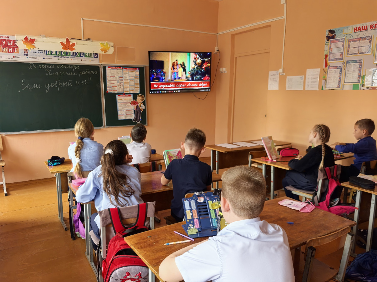 Обучающиеся 4 "а" класса МБОУ "Малосюгинская СОШ" в октябре посмотрели короткометражный фильм «Новогодний подарок» в рамках всероссийской образовательной программы «Киноуроки в школах России».