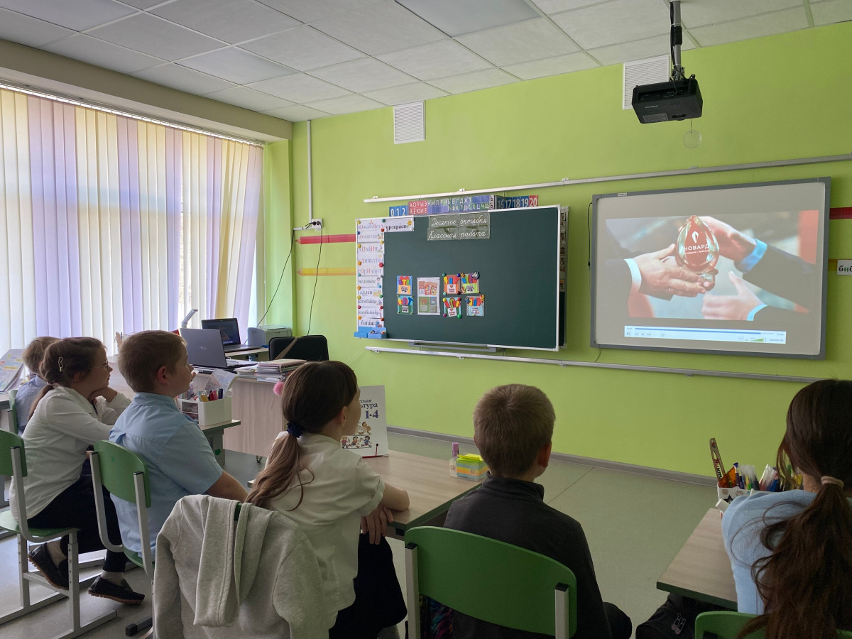 В начале октября ученики 4 класса в рамках проекта "Киноуроки в школах России" посмотрели фильм «Первое дело», посвящённый качествам идейности и убеждённости. Сюжет фильма вызвал сильные эмоции у детей, они переживали за героя Олега, который, услышав случайный разговор, решил изменить свою жизнь. Учащиеся отметили важность поддержки друзей на пути к цели и сделали вывод, что совместными усилиями легче осваиваются новые идеи.