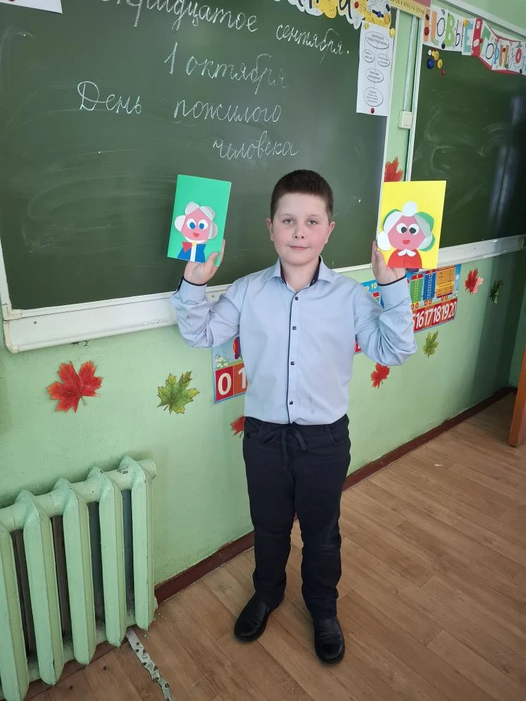 Нашему классу удалось прикоснуться к качеству личности, как уважению к старшему поколению. После просмотра ребята приняли участие в обсуждении и смогли ответить на главный вопрос – что должен сделать человек, чтобы уважение появилось внутри него, чтобы окружающие уважали каждого живущего на планете Земля.Так как, в данный момент шла «Декада пожилых людей», ребята решили сделать объёмные красивые открытки своим бабушкам, в надежде, что их открытки согреют теплом детских сердец пожилых людей ( своих бабушек и дедушек).