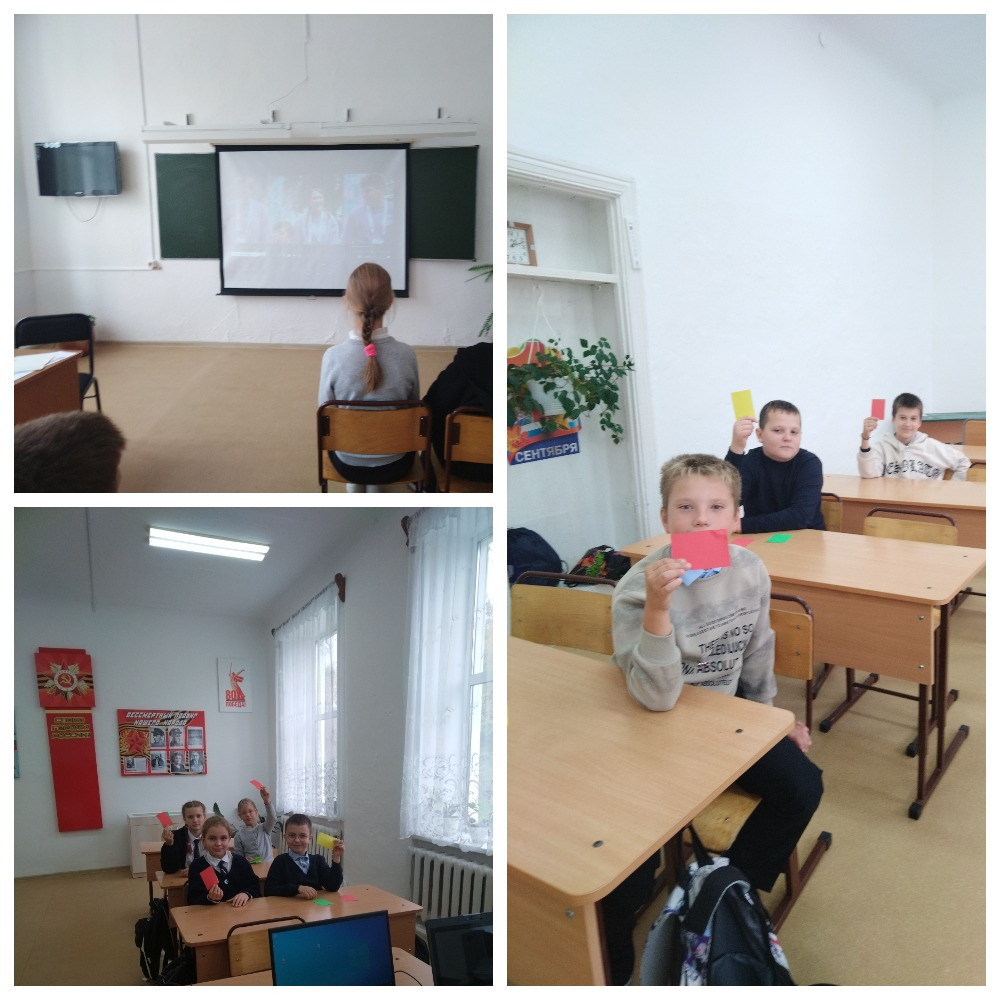 В октябре учащиеся 5 класса посмотрели фильм "809, или один день Вовки во исполнение Указа". Перед просмотром была проведена подготовительная работа по осознанию качества "активная жизненная позиция". Детям были предложены ситуации активной позиции со знаком плюс и активной позиции со знаком минус, которые наглядно показали ребятам, как важно сделать правильный вывод в жизни. На вопрос: "Могут ли дети привести примеры из своей жизни активной позиции со знаком плюс", ребята хором привели в пример волонтеров и их деятельность.