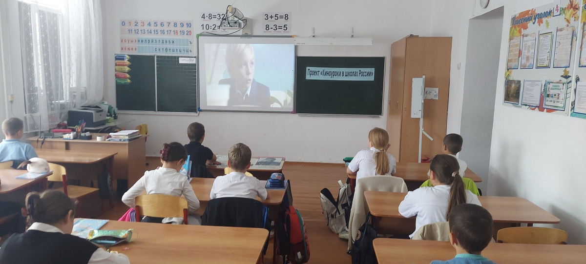 В октябре учащиеся 4 класса в рамках проекта "Киноуроки в школах России" посмотрели фильм «Первое дело», посвящённый качествам идейности и убеждённости. Фильма оказался очень переживательный, ребята болели за главного героя Олега, который, захотел помогать окружающим. Ученики 4 класса, отметили, что на трудном пути его поддерживали мама и друзья, это очень важно, когда в тебя верят и помогают.