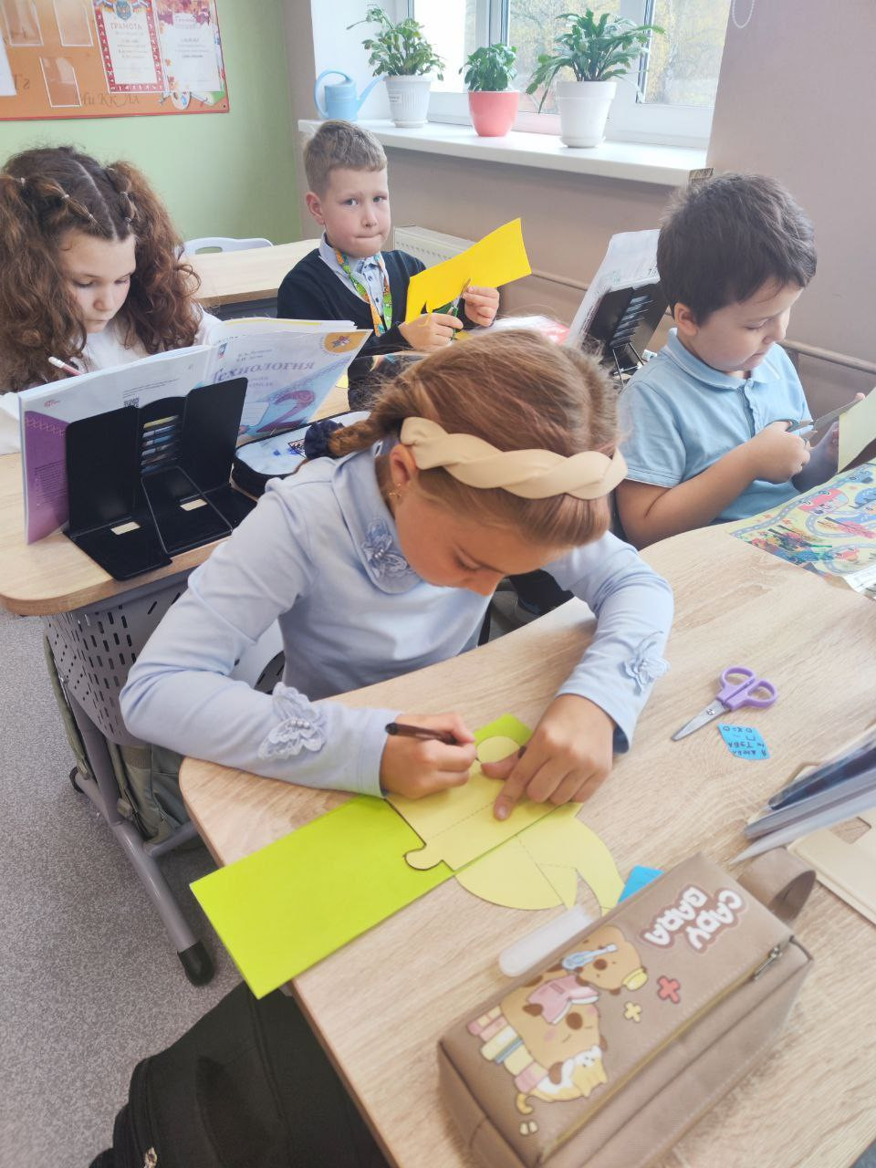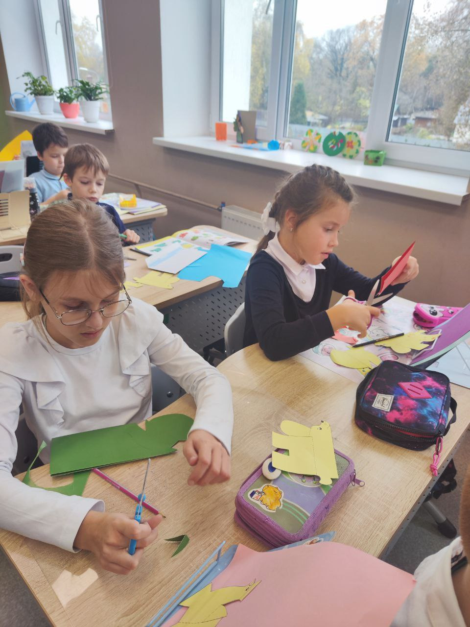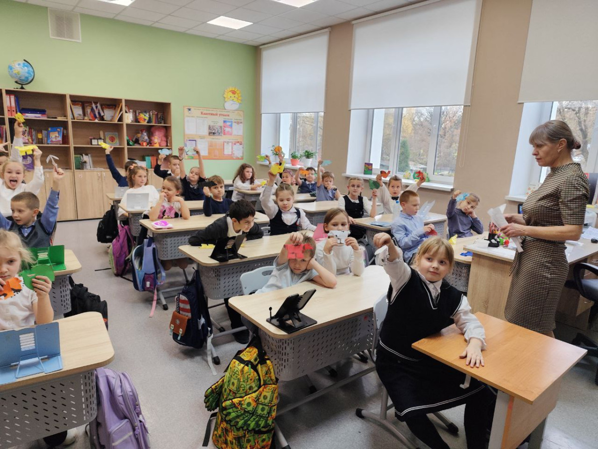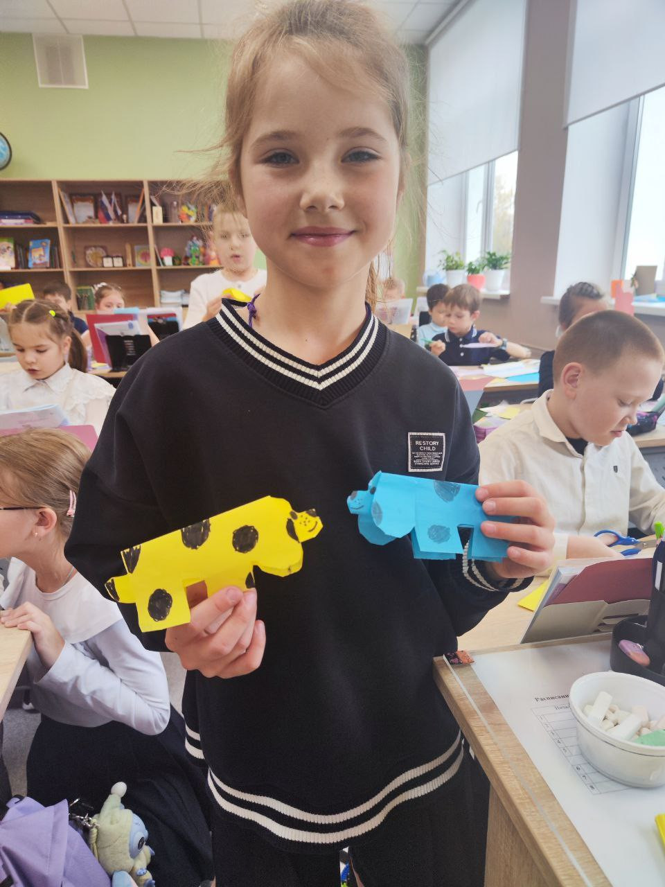 Как же мы можем порадовать других? На уроке труда второклассники делали под руководством учителя игрушки из бумаги. Решили сделать по две фигурки, чтобы подарить первоклассникам, порадовать их!