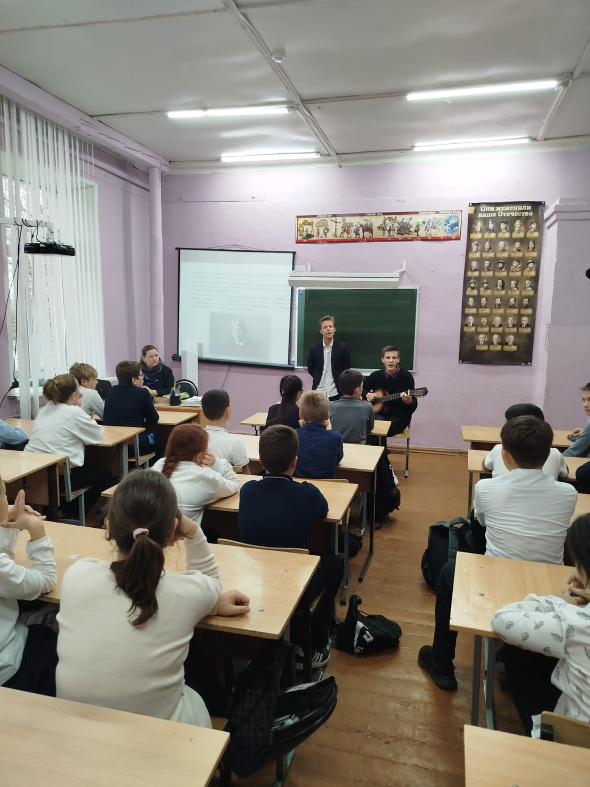 Ученики 10 класса посмотрели фильм "Призвание". Этот фильм заставляет ребят задуматься о своем будущем, кем бы они хотели стать и чем заниматься в жизни. По окончанию фильма дети пришли к общему выводу, что учителем может быть только тот человек, который очень любит детей. Поэтому ребята решили попробовать себя в роли учителя. Они подготовили мероприятие для 5 класса "Читаем и поём Есенина". Они очень ответственно подошли к данному мероприятию, пятиклассники остались довольны.