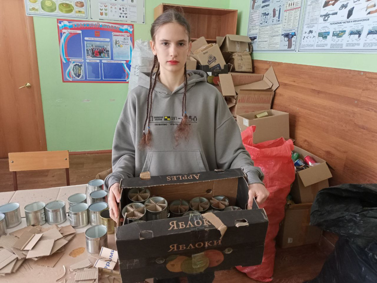 Так как мы находимся с приграничном регионе, многие школьники из династии военных и в качестве социальной практики предложили объявить сбор жестяных банок для изготовления окопных свечей для наших бойцов.