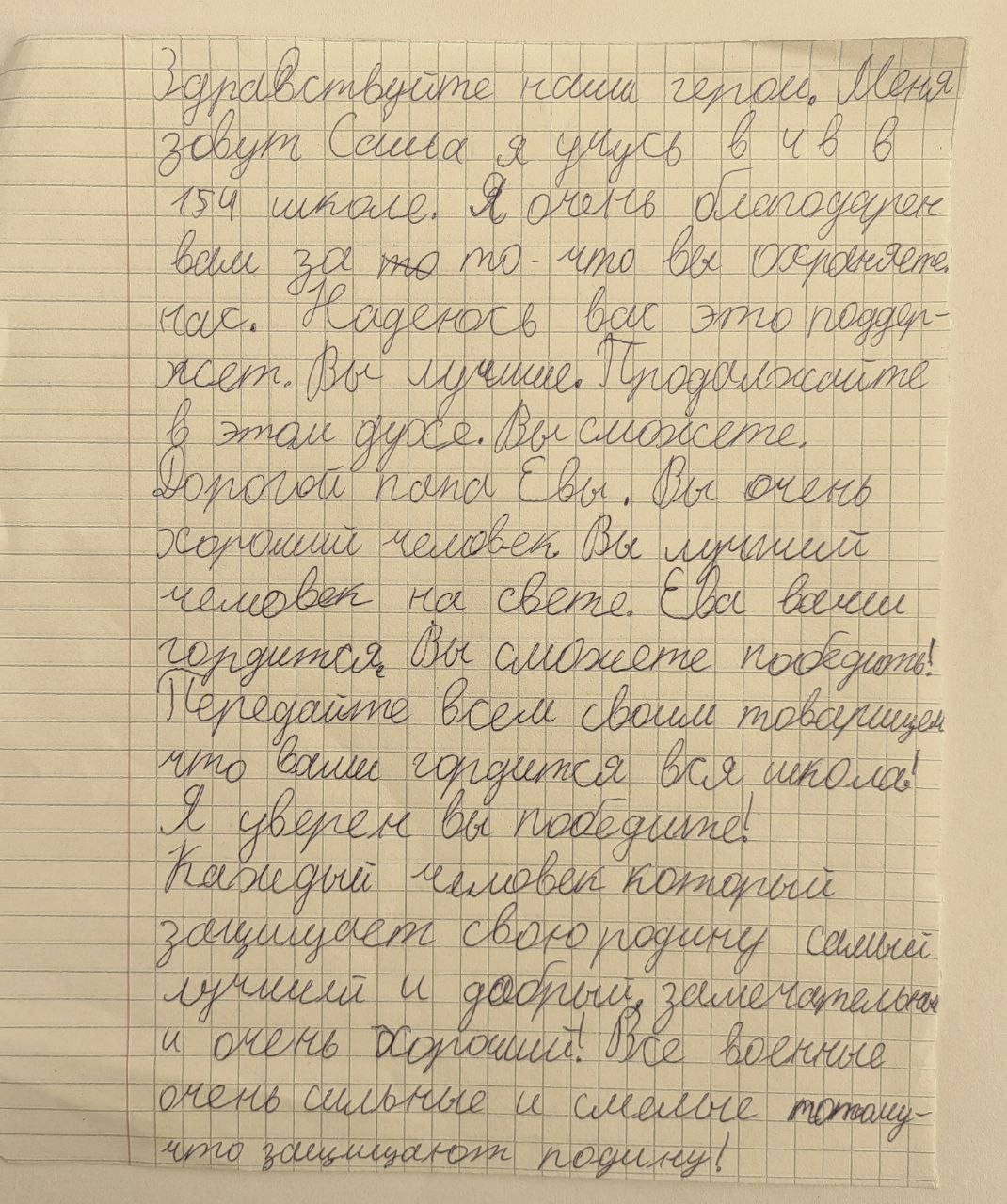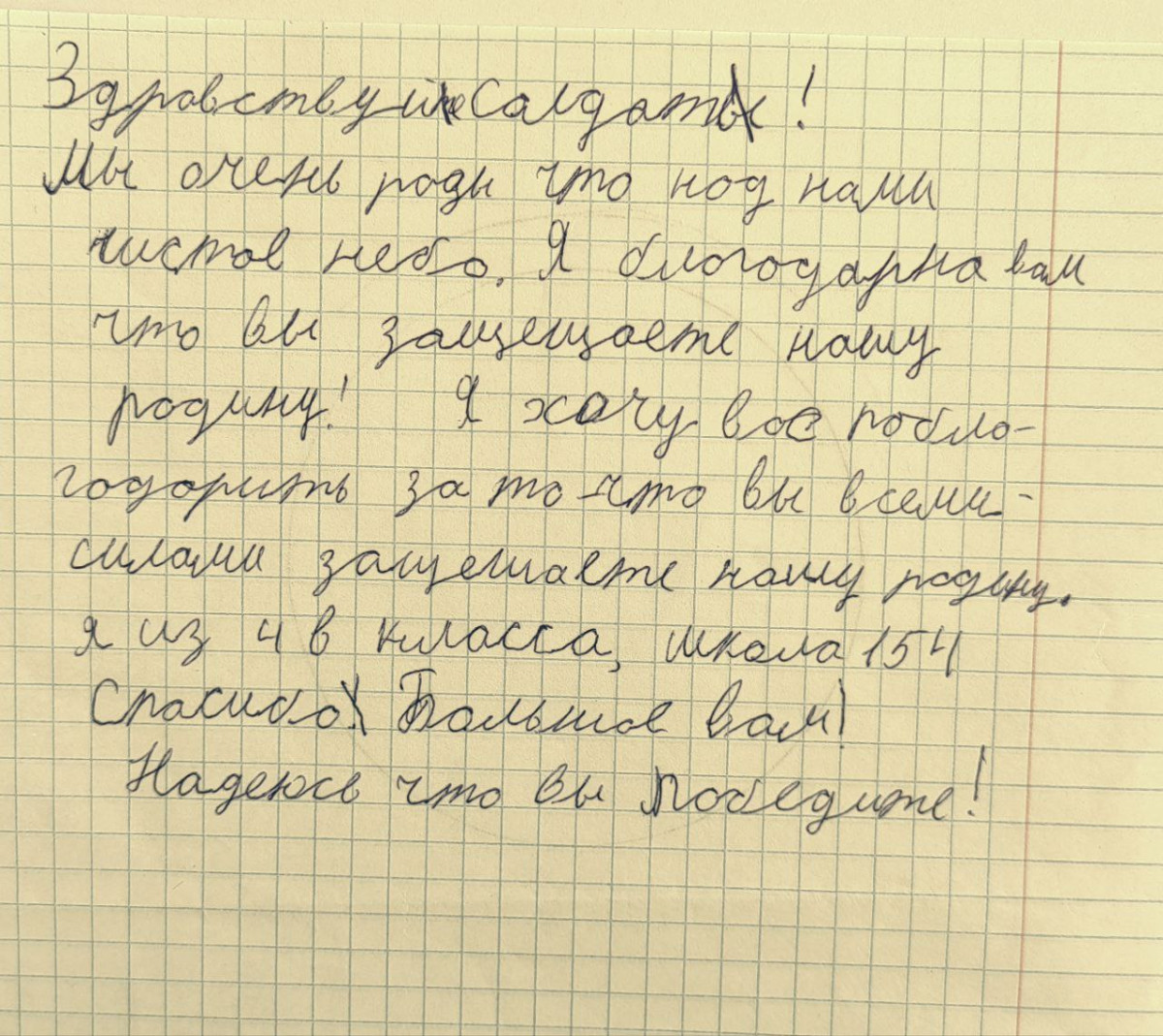 С учениками 4в класса работа была продолжена. Они предложили написать письма и присоединиться к школьной акции «Из дома с любовью». В ходе которой были собраны посылки и отправлены в зону Специальной военной операции нашим Защитникам.