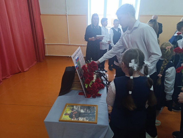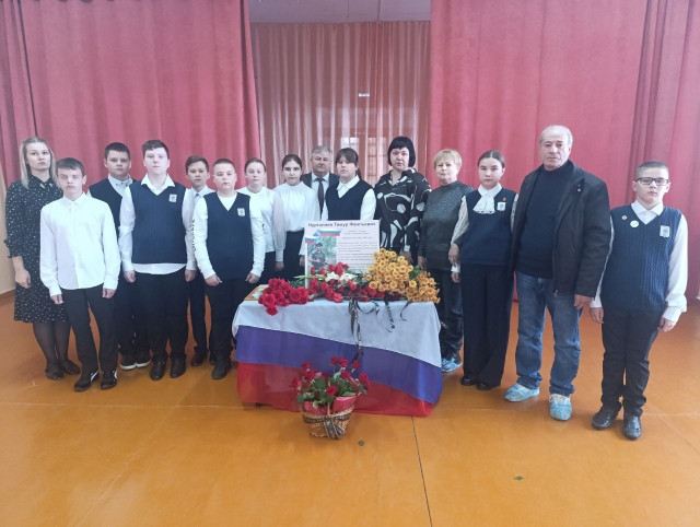 Для ребят из нашего класса эта тема чрезвычайно актуальна, ведь в нашей классной семье весной 2025 года случилось страшное горе - в зоне СВО героически погиб папа Алины, совсем молодой парень (32 года), Тимур Нургалиев. Ребята захотели, чтобы память о герои жила не только в наших сердцах, но и в сердцах всех-всех , кто имеет отношение к посёлку Приупский и к нашей школе. Мы организовали торжественную линейку, в ходе которой была открыта памятная доска, к ней возложены цветы. На мероприятие ребята пригласили гостей: врио главы МО Приупское, Молостова Дениса Владимировича, родителей павшего героя, его папу, Нургалиева Фаиля Радиковича. Родители ребят тоже приняли активное участие в подготовке к мероприятию : в частности помогли организовать, доставили в школу саму памятную доску и цветы. На линейке учащиеся 7 класса читали стихи, благодарили родителей Тимура Фаильевича, ведь они воспитали мужественного и отважного мужчину, который с честью выполнил свой гражданский долг и отдал жизнь за родную землю. Дочь героя, Алина Нургалиева, прочитала стихотворение, посвящённое папе. Никто не мог сдержать слёз. Горькои больно осознавать, что многие сыны Отечества не возвращаются с поля боя, но мы чётко знаем, что наша святая обязанность - сохранить память о героях в каждом сердце!