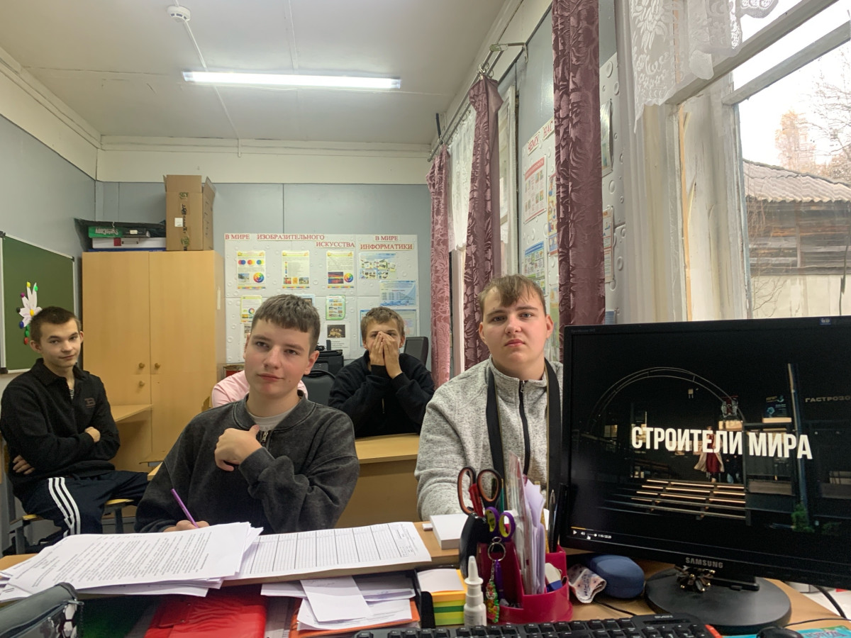 Учащиеся 9 класса посмотрели фильм "Строители мира". Фильм раскрывает нравственные понятия "мотив" и "побуждение". Киноурок подчёркивает важность профессии "производителя работ", восстанавливающего города, — это служение обществу возрождение того что дорого людям, на пути построения мира. Через взаимоотношение героев фильма мы понимаем, что построить мир возможно только в самоотверженном стремлении преодолеть трудности, проявив силу духа и любовь к людям. Лучшие нравственные качества, усиленные в проявлении в профессии многократно, составляют основу возрождения городов и человечности, созидания будущего.