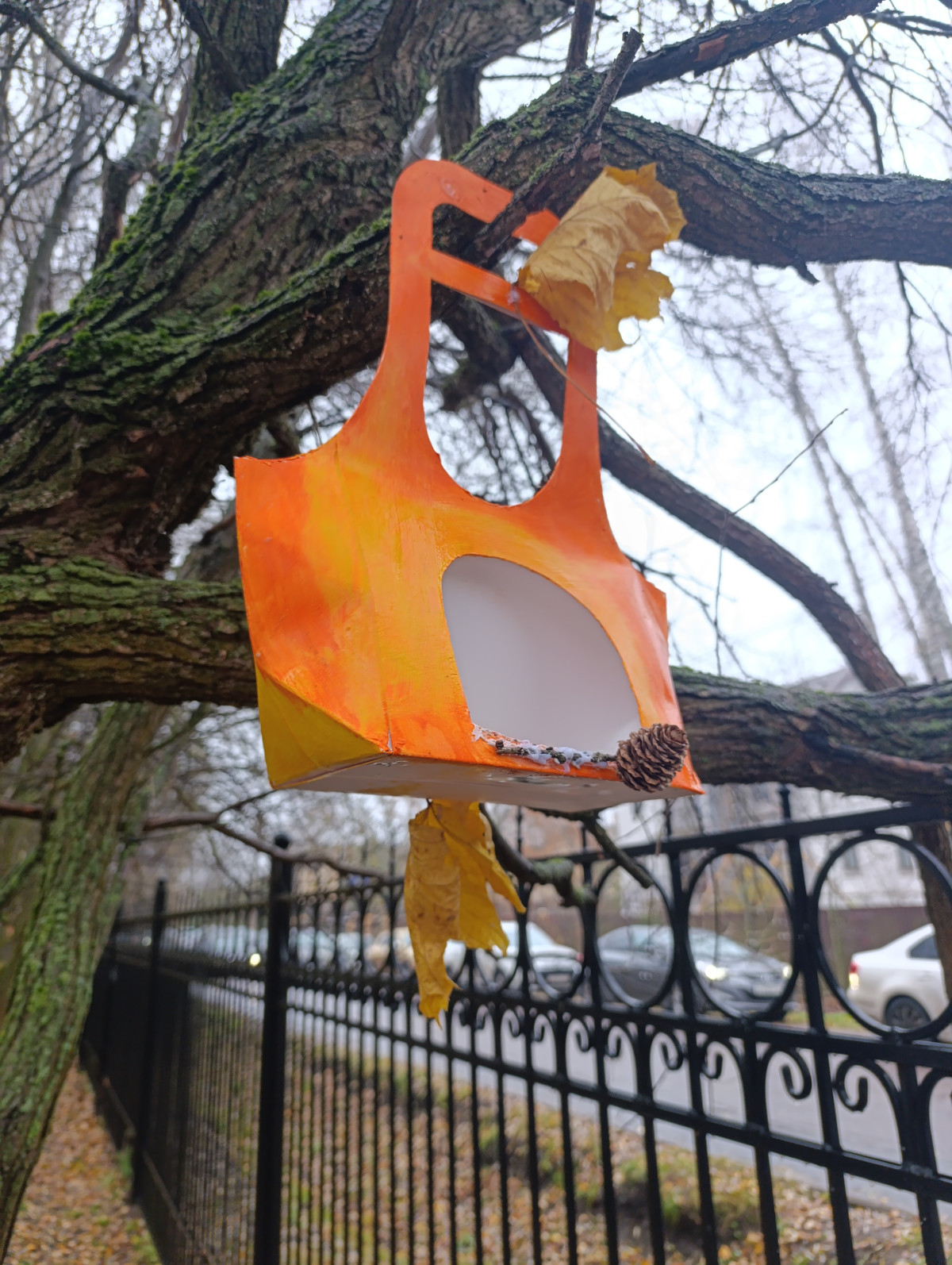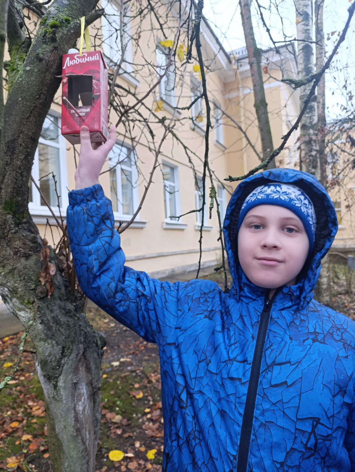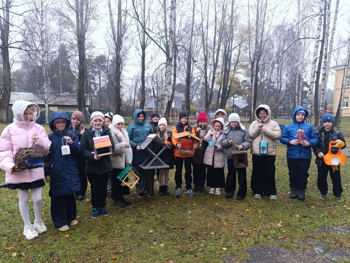 5. После каникул в школе прошла презентация кормушек. Четвероклассники обсудили трудности, с которыми столкнулись при изготовлении кормушек. Затем был разработан график дежурств по наполнению кормушек и выбраны места для их размещения — на пришкольной территории и в поселке рядом со школой. Когда кормушки повесили, а корм положили, ребята поделились впечатлениями.