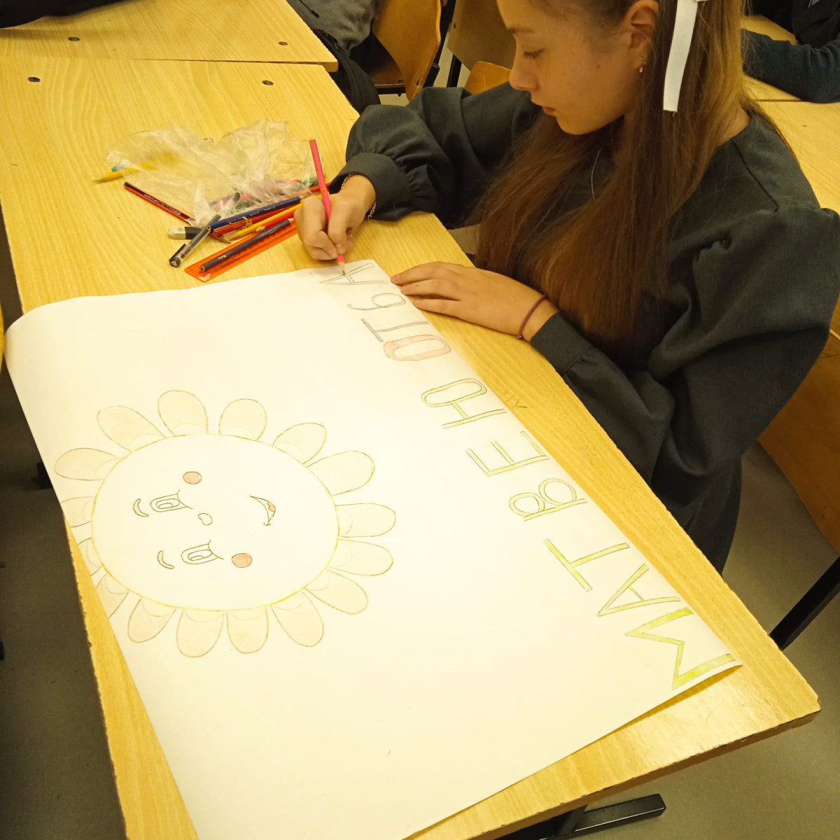 Социальную практику провели в творческой форме: шестиклассники подготовили памятный плакат с пожеланиями для одноклассника, который переезжает жить в другой город. Ребята очень эмоционально говорили пожелания другу. А он, в свою очередь, пообещал не забывать свой 6 «А» и учителей.