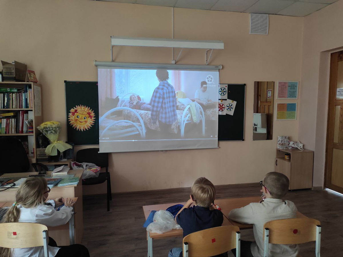 Учащиеся первого основного класса внимательно посмотрели второй раз, теперь уже совсем осознанно сделали выводы, проговорив их вслух. Многие послушали фильм и тоже активно участвовали. Классный руководитель, Лариса Алексеевна, старалась настроить на нужные выводы. Детям очень понравилось участвовать в акции доброты и чистоты, который провели в классе.