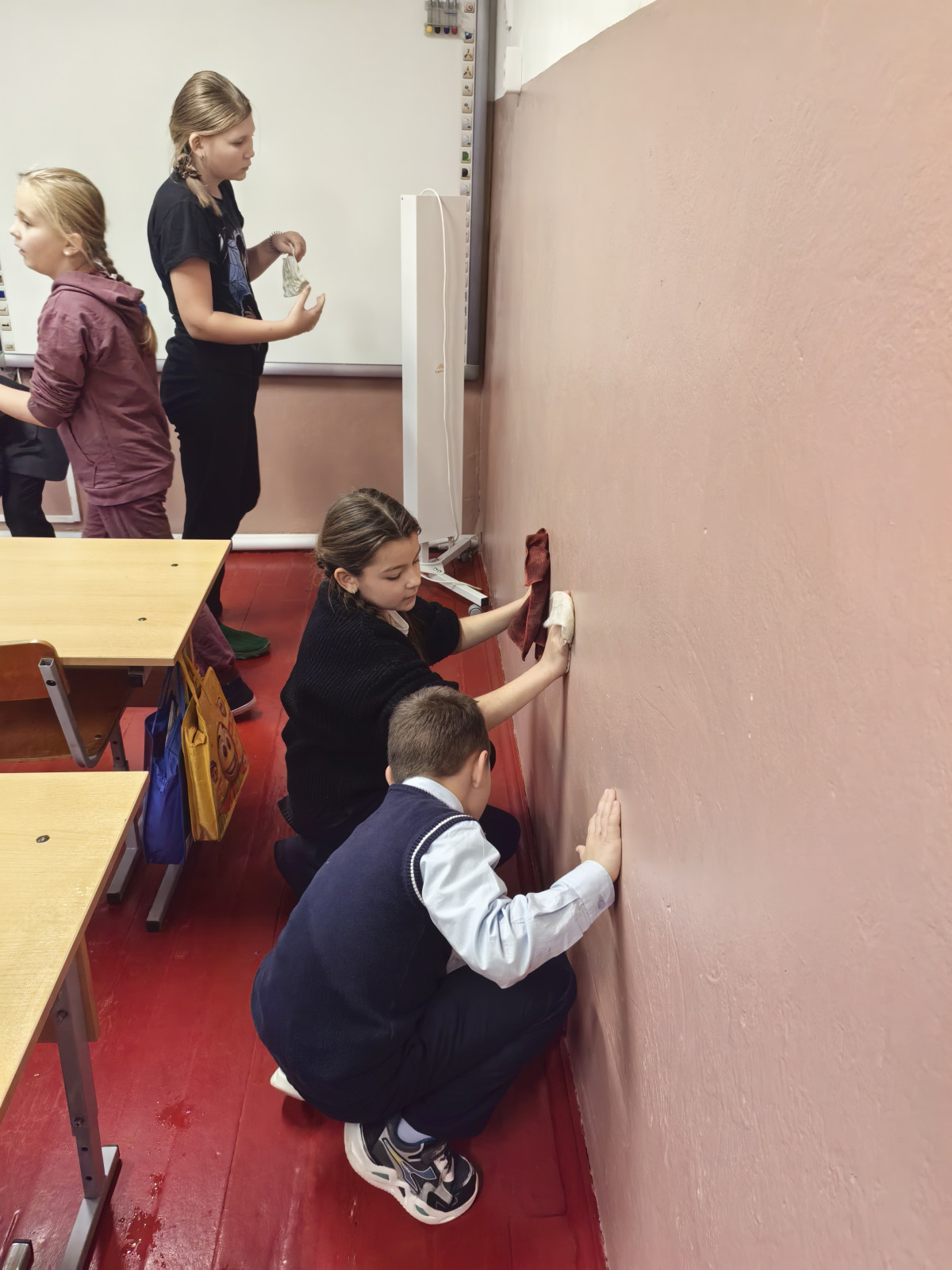 Посмотрев фильм "Друг в беде не бросит" отметили качество помогать, а не осуждать ." Ребята 2 класса решили помочь уборщицам школы, сделав генеральную уборку класса и поняли, что труд техслужащих тяжёлый. Они поблагодарили уборщиц за их труд! Пообещали поддерживать порядок. К ребятам 2 класса присоединились школьники из 4 класса. Ребята после того как навели порядок оценили свою работу , они получили от работы удовольствие.