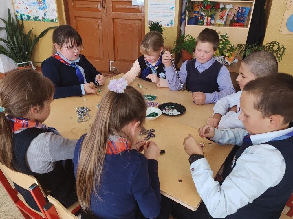 Просмотр фильма " Три солнца" в 2-4 классов вызывал большой отклик в душе и интерес у ребят к проявлению созидательных качеств, выраженных в действиях героев фильма. Дети обсудили, просмотренный ими фильм, что побудило их к осмыслению и пониманию ситуации, показанной на экране, самоанализу и стремлению измениться самим. Также ребята решили проявить уважение к педагогам нашей школы и в преддверии праздника Дня учителя изготовить и подарить открытки для них. После проведенного дела дети оценили успешность своей работы. Когда учителя увидели эти открытки, они были приятно удивлены и оценили старания ребят. Также детям захотелось поздравить пожилых учителей с их праздником. Ребята с желанием изготовили сувенирные открытки и вручили адресатам. Позднее учащиеся 2-4 кассов приняли участие в акции "Бусики" по изготовлению бусиков для жителей Психоневролонического интерната, которым они были очень рады.