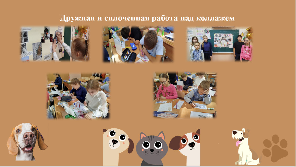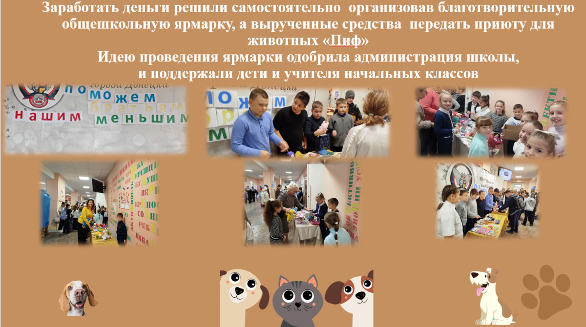Стремление следовать за героем, перенимая его качества привело к идее создания коллажа «Мой питомец», предпринимательскую жилку развивать и поддерживать позволила идея организовать благотворительную ярмарку в школе с целью сбора средств для приюта животных «ПИФ».