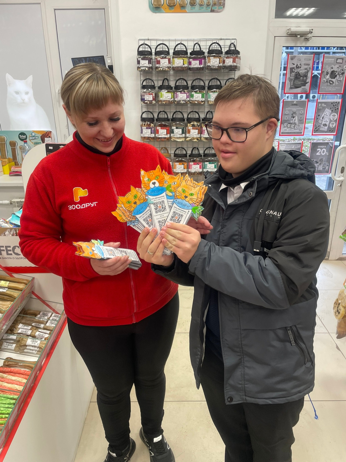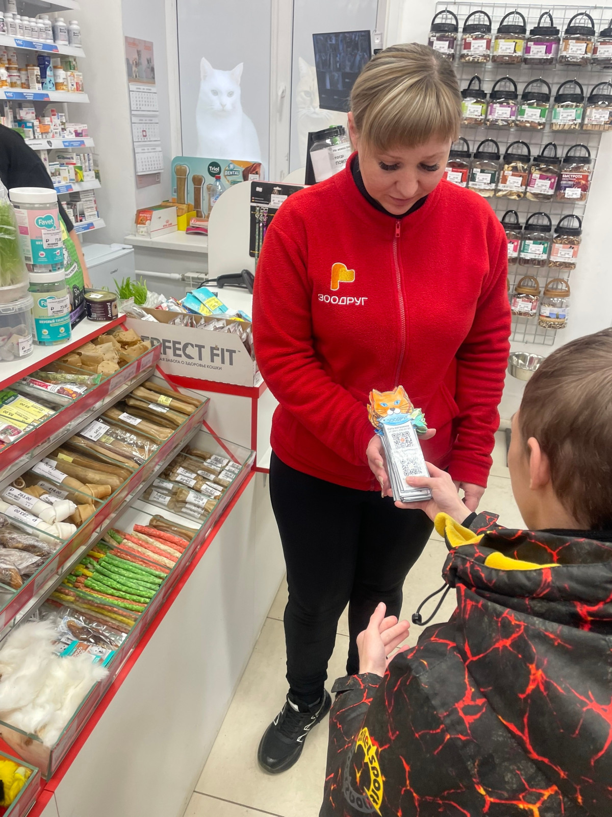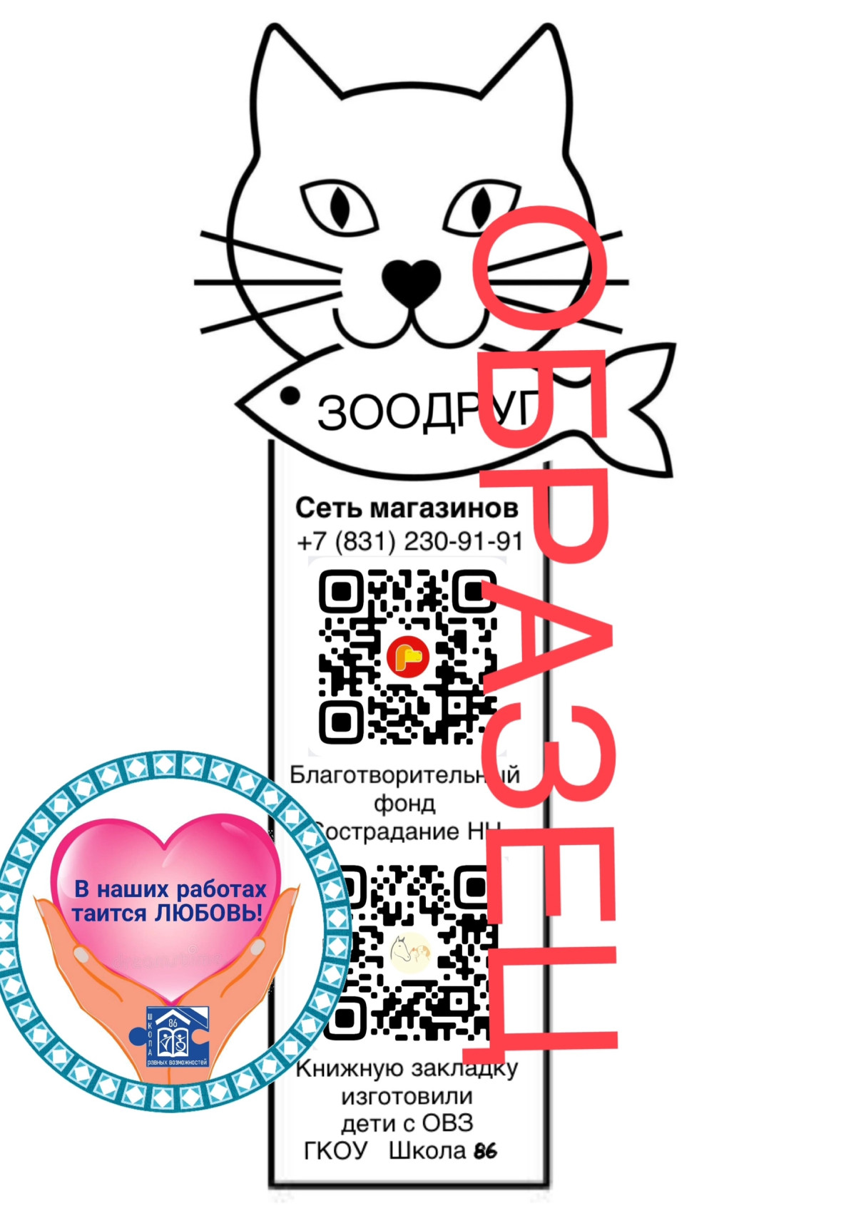 Ребята уже много лет посещают приют для бездомных животных Сострадание НН. В этот раз было решено помочь приюту через сеть магазинов ЗООДРУГ, изготовив для них рекламные книжные закладки с QR-кодом, которые помогут распространить информацию о приюте.