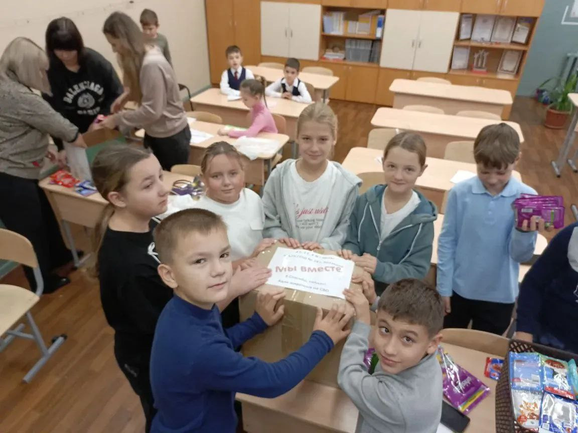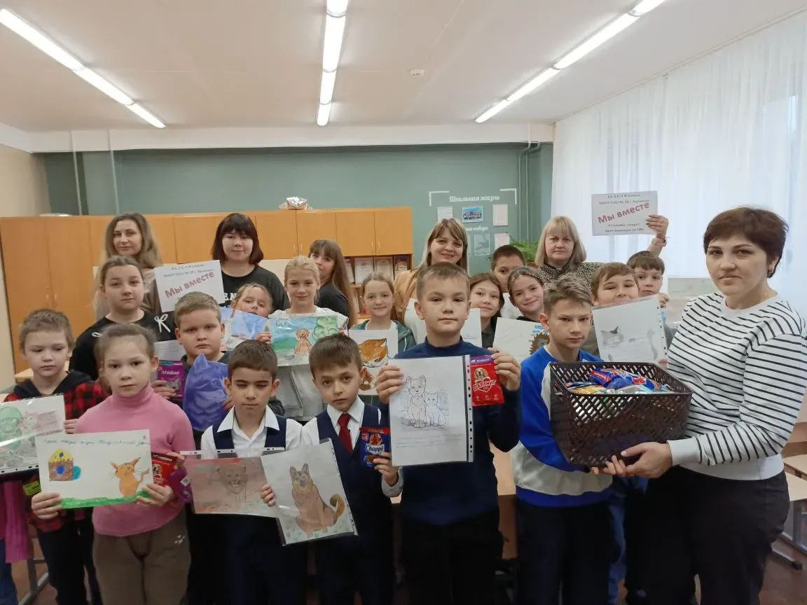 Виталий Николаевич рассказал школьникам о мужестве, взаимовыручке и о том, как важно оставаться человеком в любой ситуации. В завершение встречи ребята передали ему корм, рисунки с изображениями животных и письма для наших солдат. Доброе дело – помощь в победе. Главное- «Мы вместе»!