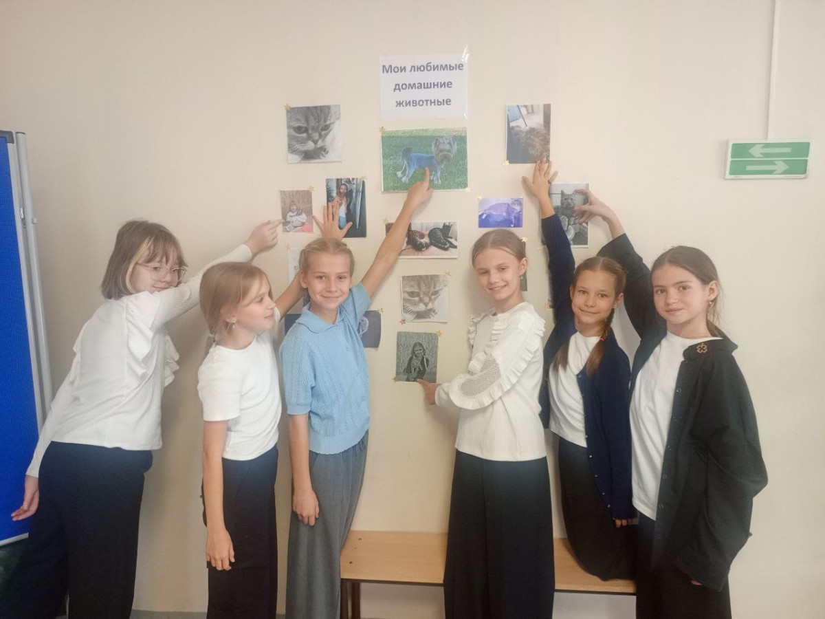 Этап 1. Создание в школе галереи домашних питомцев: ребята подготовили рассказы о своих четвероногих друзьях. К мероприятию присоединились обучающиеся 4 «Ж» и 2 «Е» классов.