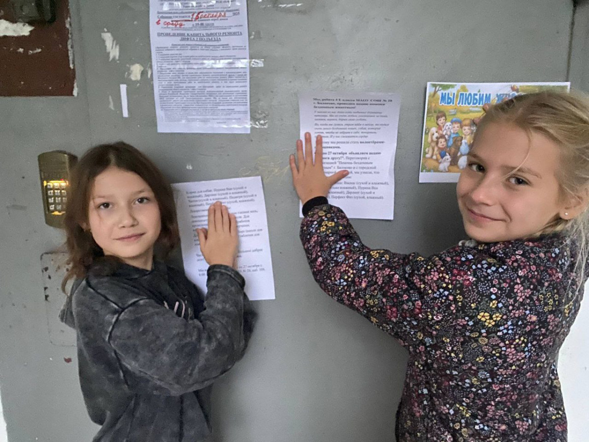 Городская акция проходила с 20 по 27 октября. Чтобы привлечь внимание к инициативе, ребята развешивали листовки в микрорайоне, а учитель Юлия Владимировна разместила информацию на портале «Добро.ру».