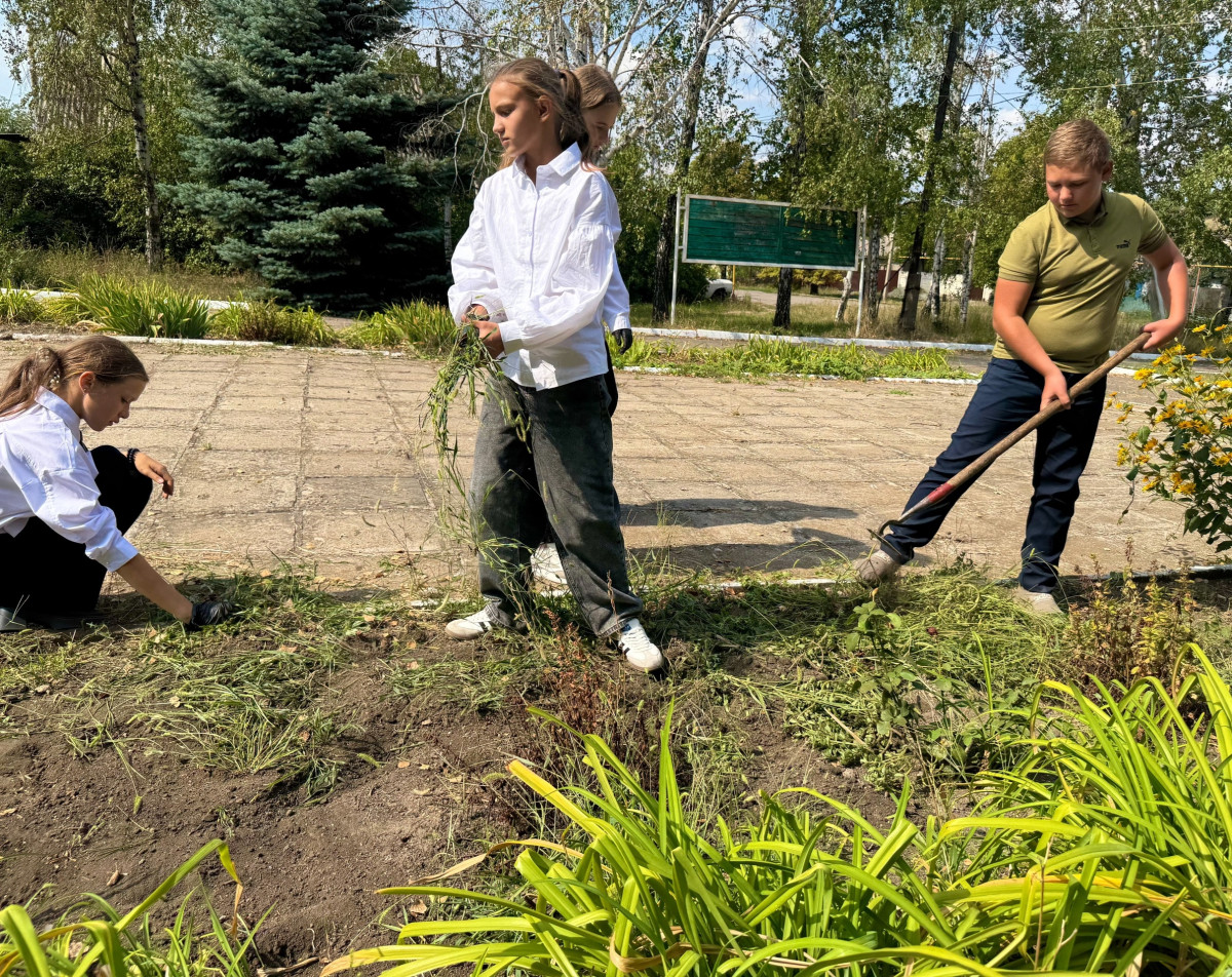 После просмотра фильма и активной работы с материалами, наши семиклассники не остались в стороне! Они с энтузиазмом взялись за реальные дела: ✅️ привели в порядок клумбы и ✅️собрали опавшую листву возле памятника ВЕЛИКОЙ ОТЕЧЕСТВЕННОЙ ВОЙНЫ, а также ✅️поменяли флаг и знамя Победы на памятнике ВОВ.