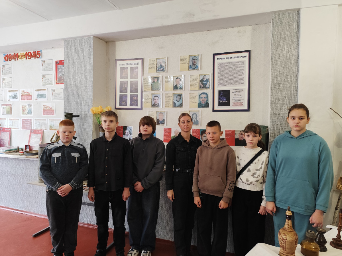 Ребята 6-В класса решили не ограничиваться разговорами и провели целый день, наполненный совместными делами. Их “путешествие” началось с посещения школьной музейной комнаты. Они стали участниками открытого урока "Знакомьтесь, мой герой". Члены кружка "Поиск" рассказали шестиклассникам о героизме бывших выпускников нашей школы, участниках СВО, ставших на защиту Донбасса и отдавших свои жизни во имя добра и светлого будущего.
