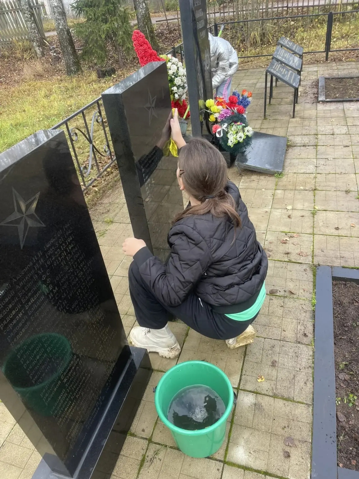 Дети проявили желание действовать "здесь и сейчас", хотелось не откладывая в долгий ящик, совершить что-то достойное уважения. Свою помощь они предложили школьному библиотекарю, и с помощью старших ребят смогли "починить" достаточно много книг. После отправились на братское заоронение и навели там порядок.