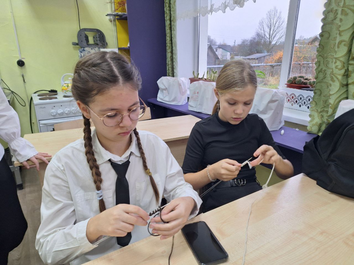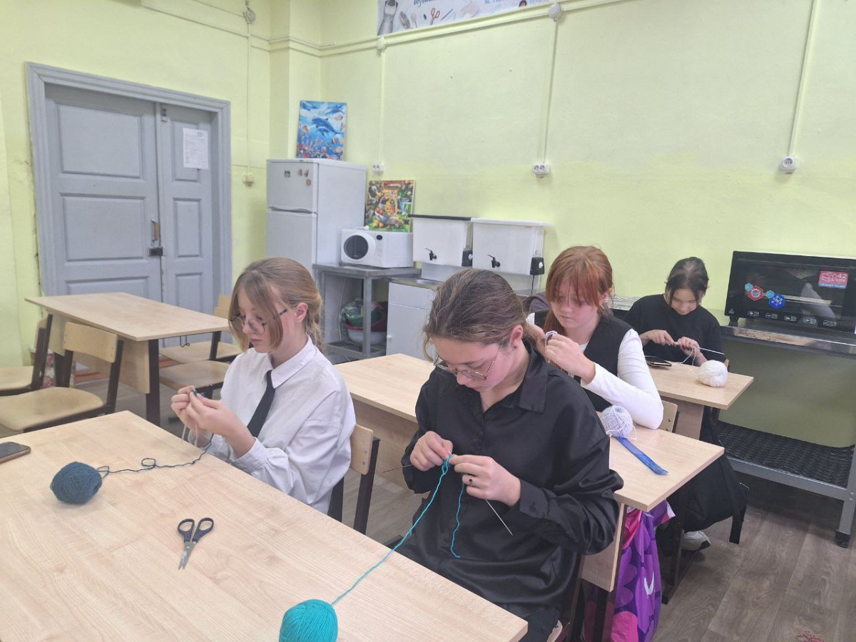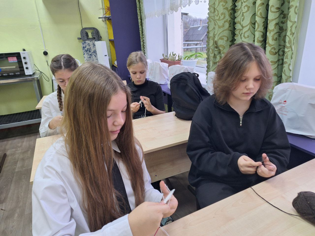 Руководитель дополнительного образования «Рукодельница» Лобачева Наталья Ивановна предложила мастер класс по вязанию носочков и многим это оказалось по душе. Девочки вкладывают в изделия частичку своей души, включились не только девочки, но и мамы, тети, бабушки. Они надеются, что связанные ими носки согреют бойцов.