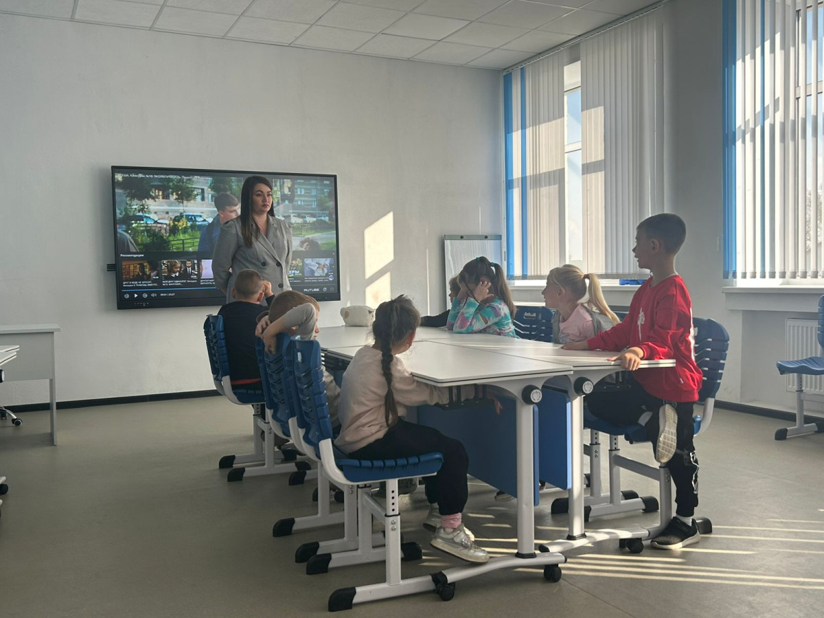 Студенты 2"В" школьного отделения под руководством преподавателя Югай Я. А. организовали киноуроки для школьников (1-6 классы).