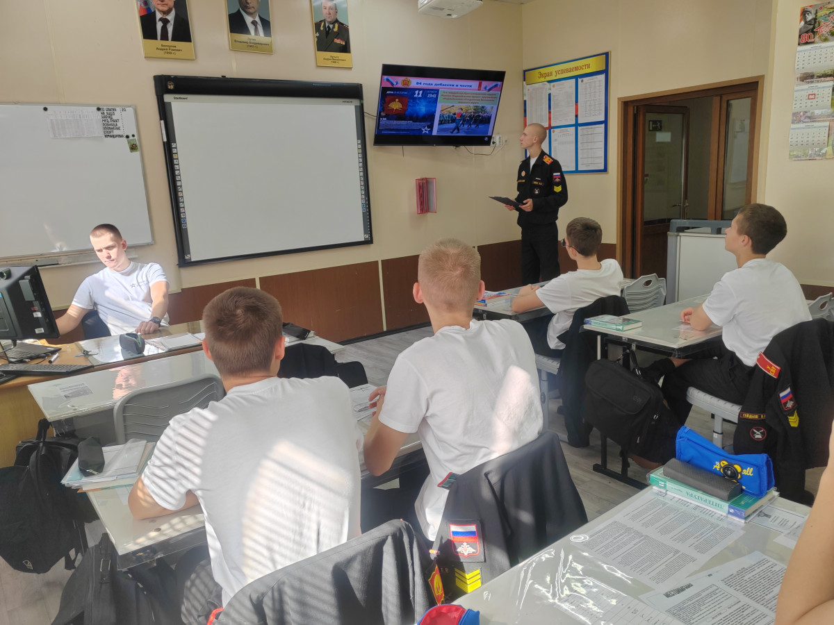 Инициативная группа разделилась на три команды, которые и отправились к своим младшим товарищам – пятиклассникам-первокурсникам. «84 года доблести и чести» – под таким названием провели воспитательное мероприятие, в честь дня рождения 5-й гвардейской Краснознаменной ордена Жукова общевойсковой армии. Ребята рассказали о славном боевом пути 5-й общевойсковой армии, о героических сражениях, в которых она участвовала, о воинах и офицерах, с честью и достоинством, выполнявших и выполняющих свой воинский долг по защите и отстаиванию интересов нашей страны в зоне специальной военной операции и в Сирии.