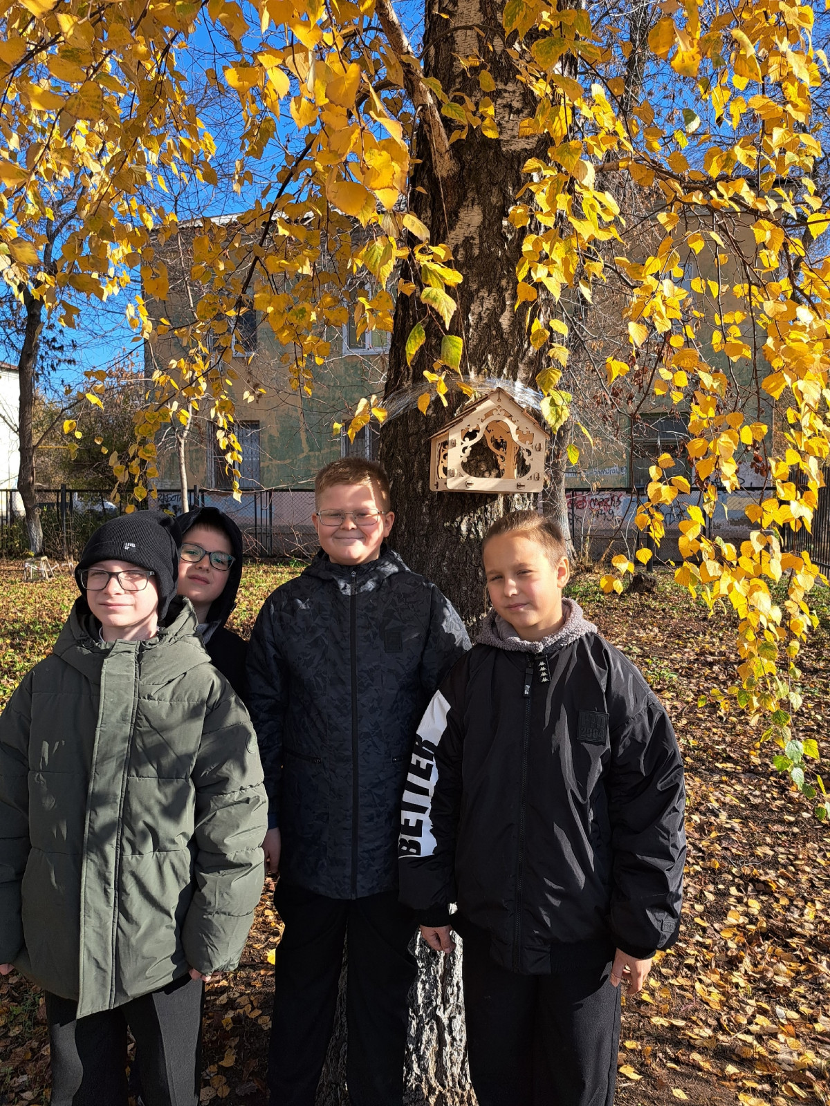 Мальчики на уроках труда собрали кормушки, и вот они уже украшают деревья в школьном дворе. Теперь осталось только не забывать добавлять в них корм.