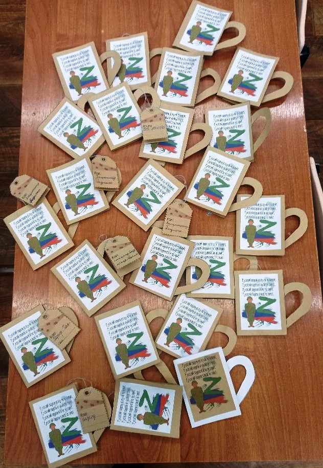 После просмотра фильма "Первое дело" учащиеся обсудили понятия "идея, идеал", как измеилось поведение героя и как стать уверенным и убежденным в своем деле. Пришли к выводу, что очень важно быть честным, мужественным, добрым. А как мы можем следовать совету: "Многие слышат правильные слова, но не все им следуют" ? Договорились быть более дорыми, внмательными не тольк к друг к друг в классе, в школе и дома. Ребята предложили написать письма благодарности и моральной поддержки бойцам специальной военной операции в предверии Дня народного единства. В письмах - открытках (кружечки с чаем), ребята выразили уважение и признательность защитникам Родины. А в кчестве небольшого сюрприза каждого героя ожидает пакетик чая. Пусть вместе с горячей кружечкой чая тепло ребячих сердец согреет наших защитников.