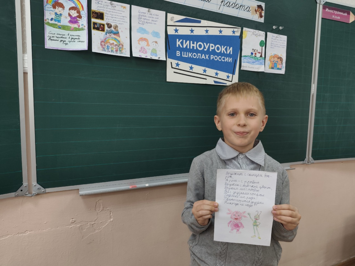 В октябре ребята 2-Б класса просмотрели фильм «Не трус и не предатель». После просмотра дети делились впечатлениями от сюжета, вспоминали наиболее яркие эпизоды. На основе ситуаций и действий героев дети пришли к раскрытию понятия дружбы, её сущности и форм проявления. Главные принципы дружбы были определены детьми так: не бросать друзей в беде, не осуждать человека, надо уметь дружить и помогать друзьям, хорошо иметь верных товарищей.