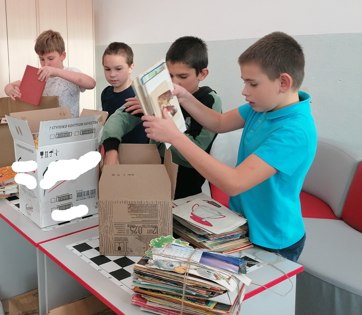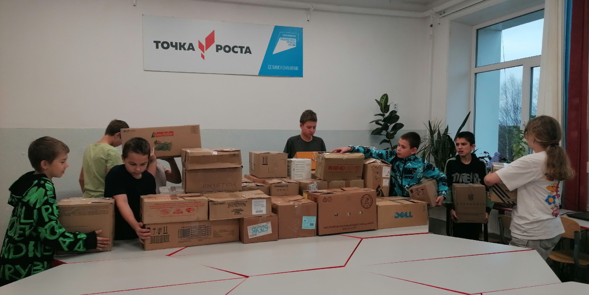 Шестиклассники в качестве доброго дела решили помочь упаковать всё в коробки. Принесли от магазинов коробки, волонтёры помогли их склеить. Сначала упаковали продукты питания, а потом уже макулатуру, крышечки и баночки. Получилось 32 коробки для приюта и 40 коробок макулатуры, которую можно будет сдать в Суоярви и деньги от сдачи будут переведены в приют.