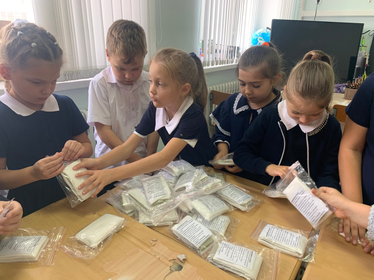 Размышляя над тем, кому они могли бы оказать помощь, ребята перебирали разные идеи. И тут на одной из перемен к ним подошли пятиклассники и поделились своим опытом: они изготавливали «сухой душ» — специальные гигиенические наборы, которые помогают солдатам поддерживать чистоту даже в самых сложных условиях.