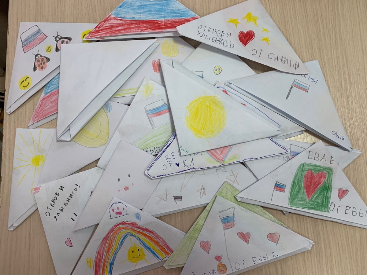 Но на этом добрые инициативы не закончились. Дети придумали ещё один способ поддержать тех, кто сейчас на службе: нарисовать для солдат тёплые, душевные рисунки. Многие первоклассники пока не умеют писать письма, зато через рисунки смогли искренне выразить свою благодарность и внимание.