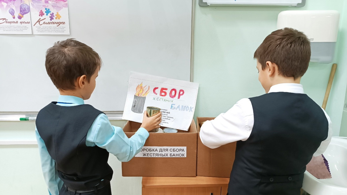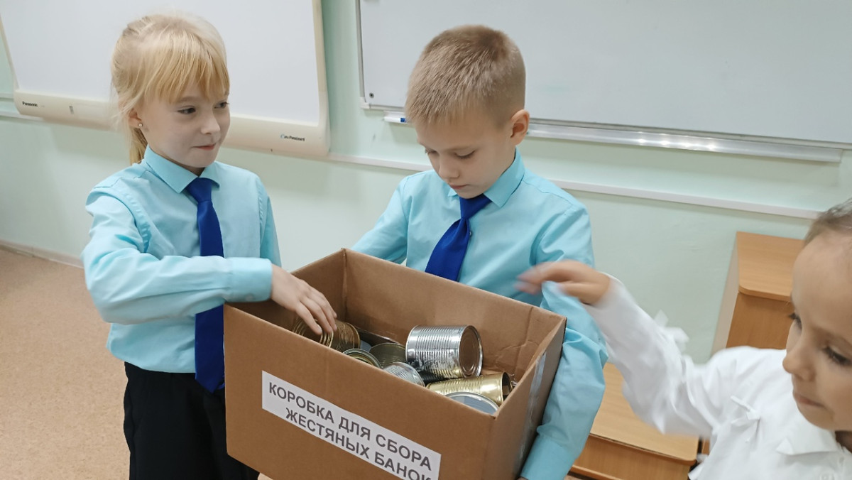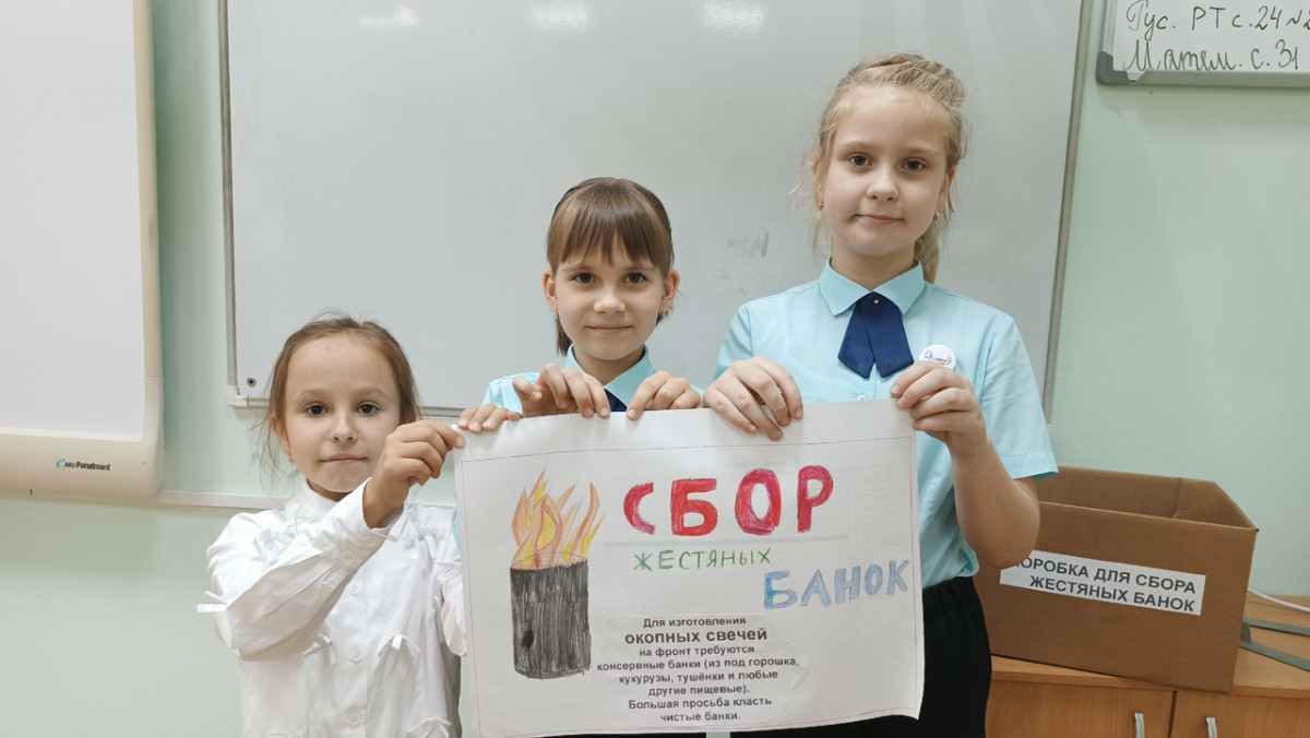 На следующем занятии поступило предложение от ученика 2 "Г" класса, мама которого состоит в группе помощи бойцам СВО, собрать жестяные банки для изготовления окопных свечей, в которых бойцы нуждаются постоянно. Естественно, что отливают свечи взрослые, а вот собрать банки под силу и второклассникам. Ребята с удовольствием взялись за реализацию идеи. Они выбрали хорошо рисующих детей - им предстояло сделать агитационный плакат. Буквально за 2 дня девочки всё оформили, спросили в столовой подходящие коробки. И ребята начали активный сбор. Ребята говорили, что спрашивали банки у знакомых и соседей, сами дома очищали банки от бумажных наклеек и т.д.