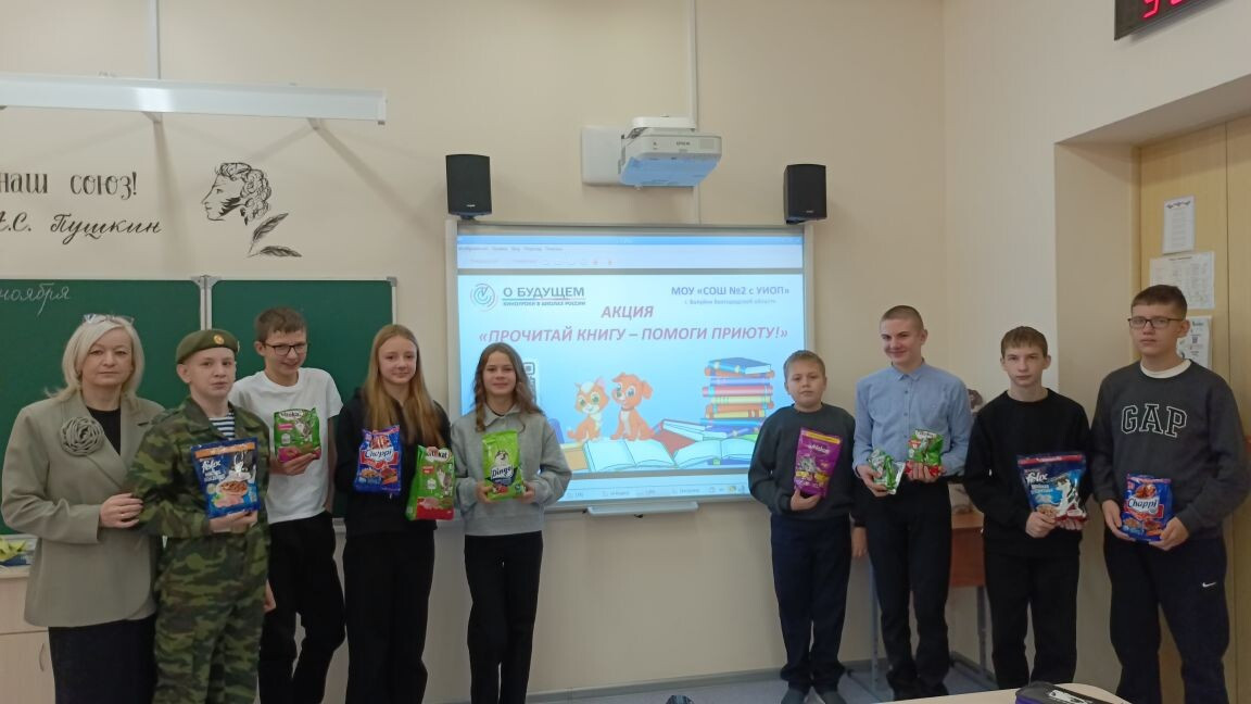 Присоединились к акции "Прочитай книгу - помоги приюту" (предложение МОУ "СОШ №2 с УИОП" г.Валуйки, Белгородская область (https://vk.com/club233635028?from=search), собрали корм городскому приюту ждя животных "4 лапы" на съэкономленные от отказа от гаджетов (затрата электроэнергии и оплата интернет-провайдеров) средства.