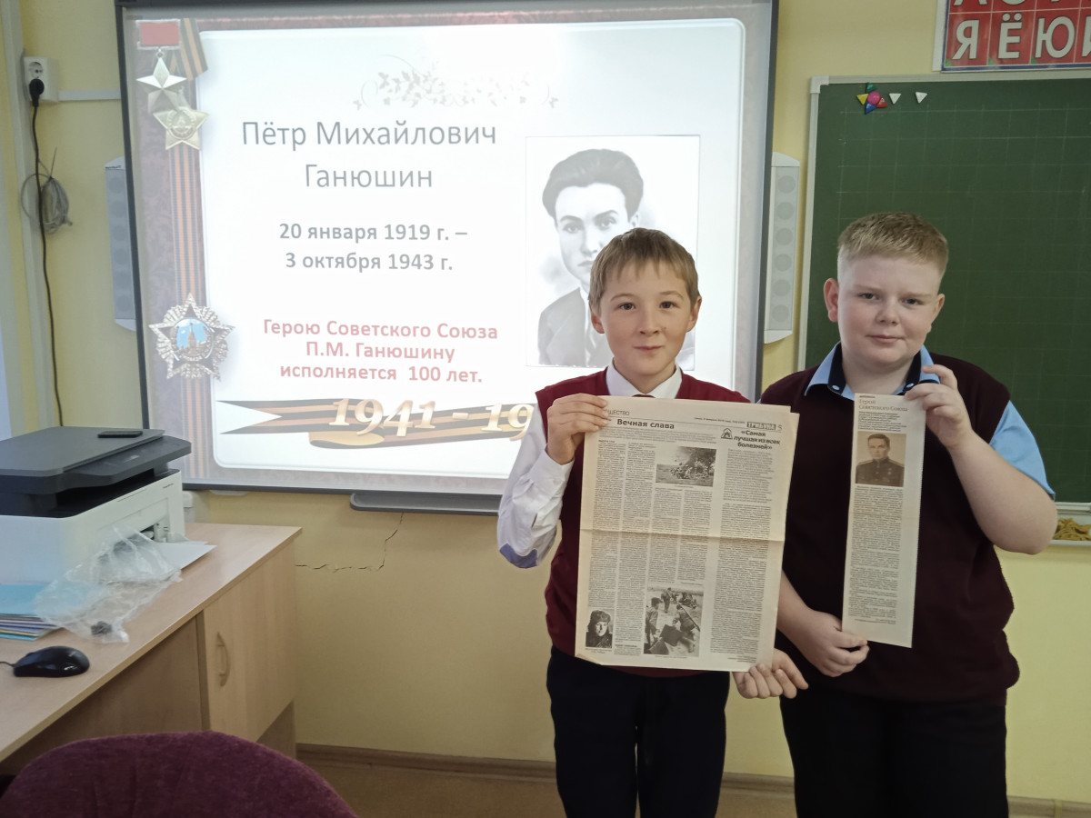 В рамках социальной практики, обучающиеся захотели узнать о выдающихся людях, проживавших в нашем селе. Собрали материал о нашем земляке- Герой Советского Союза Петр Ганюшин. В память о земляке названа наша школа и одна из улиц села. Ребята также приняли участие в проекте «Все для Победы!» в сборе гуманитарной помощи военнослужащим СВО.