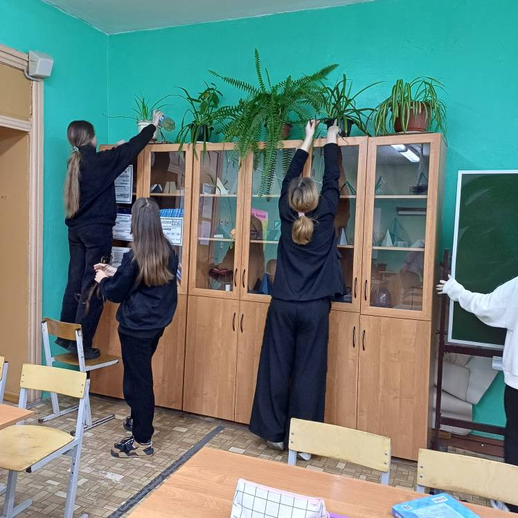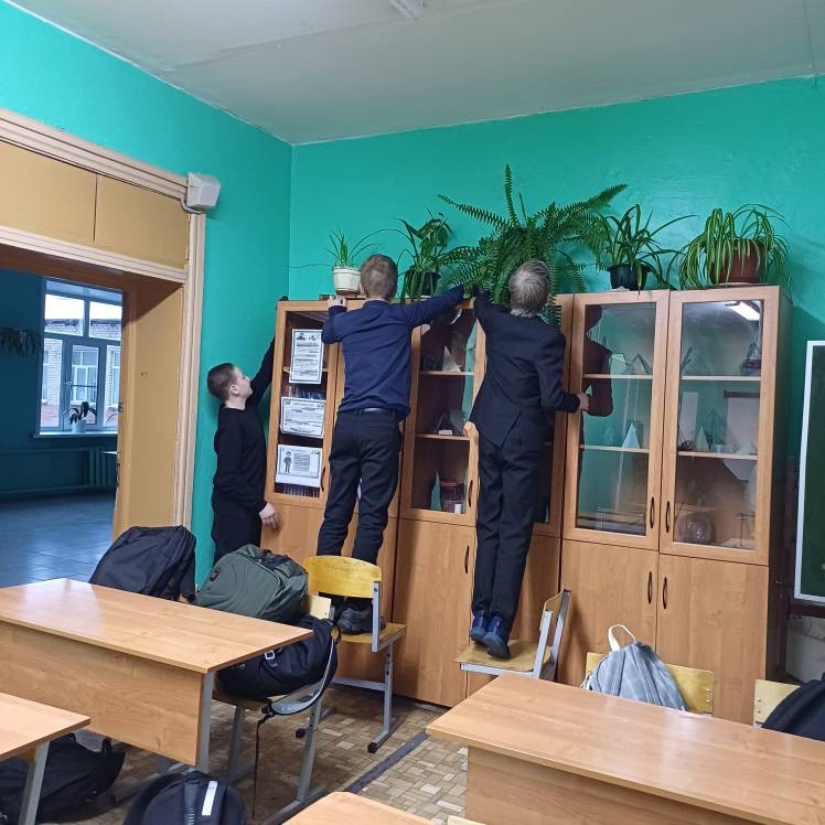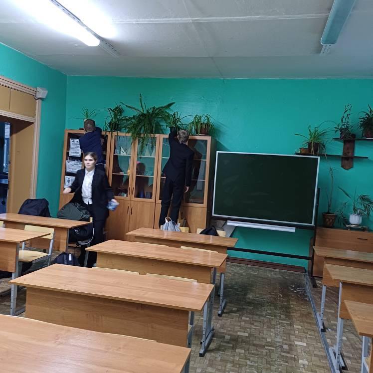 Ребята приняли решение сделать генеральную уборку в кабинете математики, в котором работает их любимая учительница, ветеран педагогического труда.