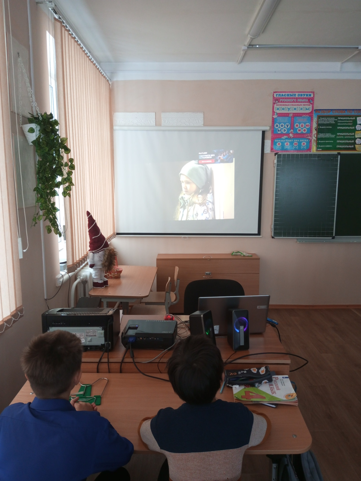В рамках проекта " Киноуроки в школах России" обучающиеся 4 "А" класса посмотрели фильм «Друг в беде не бросит». Во время просмотра у ребят были разные эмоции: кто-то улыбался, кто-то хмурился, кто-то возмущался и комментировал происходящее. А при обсуждении сюжета фильма пришли к выводу: способность людей поддерживать друг друга, заботиться друг о друге, предлагать свою помощь вместо осуждения -это важные качества человека. И как важно, чтобы рядом оказались те, кто поддержит и поймет. Люди должны научиться помогать друг другу.