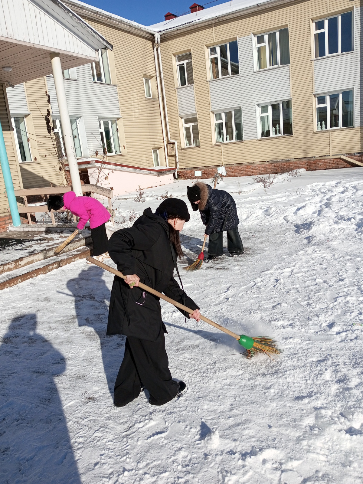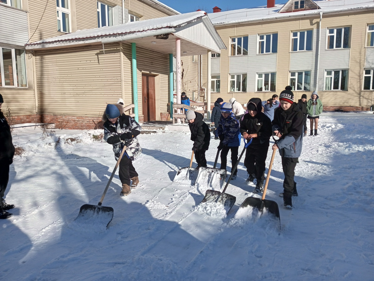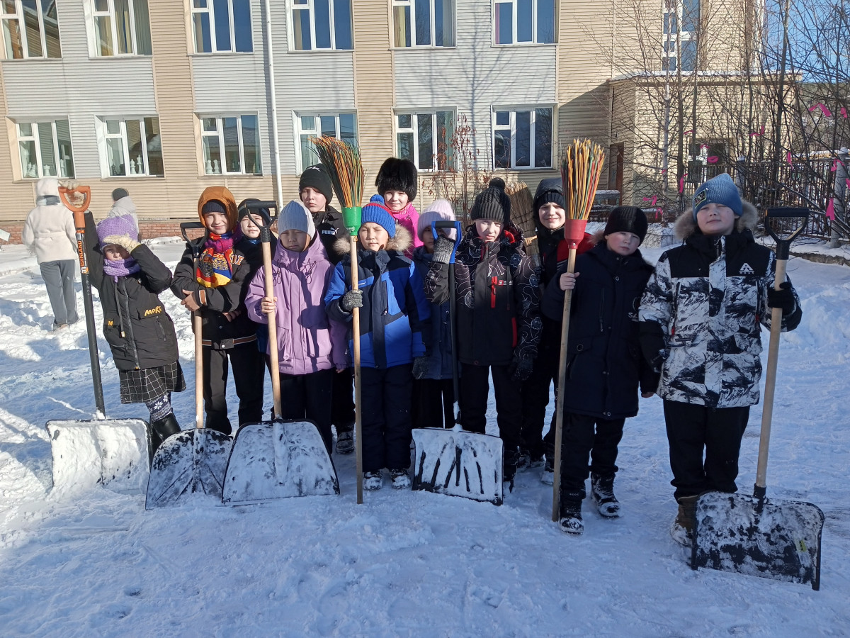 При выборе социальной практики, ребята решили сделать добре дело : помочь дворнику почистить школьный двор от снега. Весь инструмент, который требовался для уборки, ребята принесли из дома. А еще пригласили поучаствовать в этом деле ребят из 4 «Б» класса.