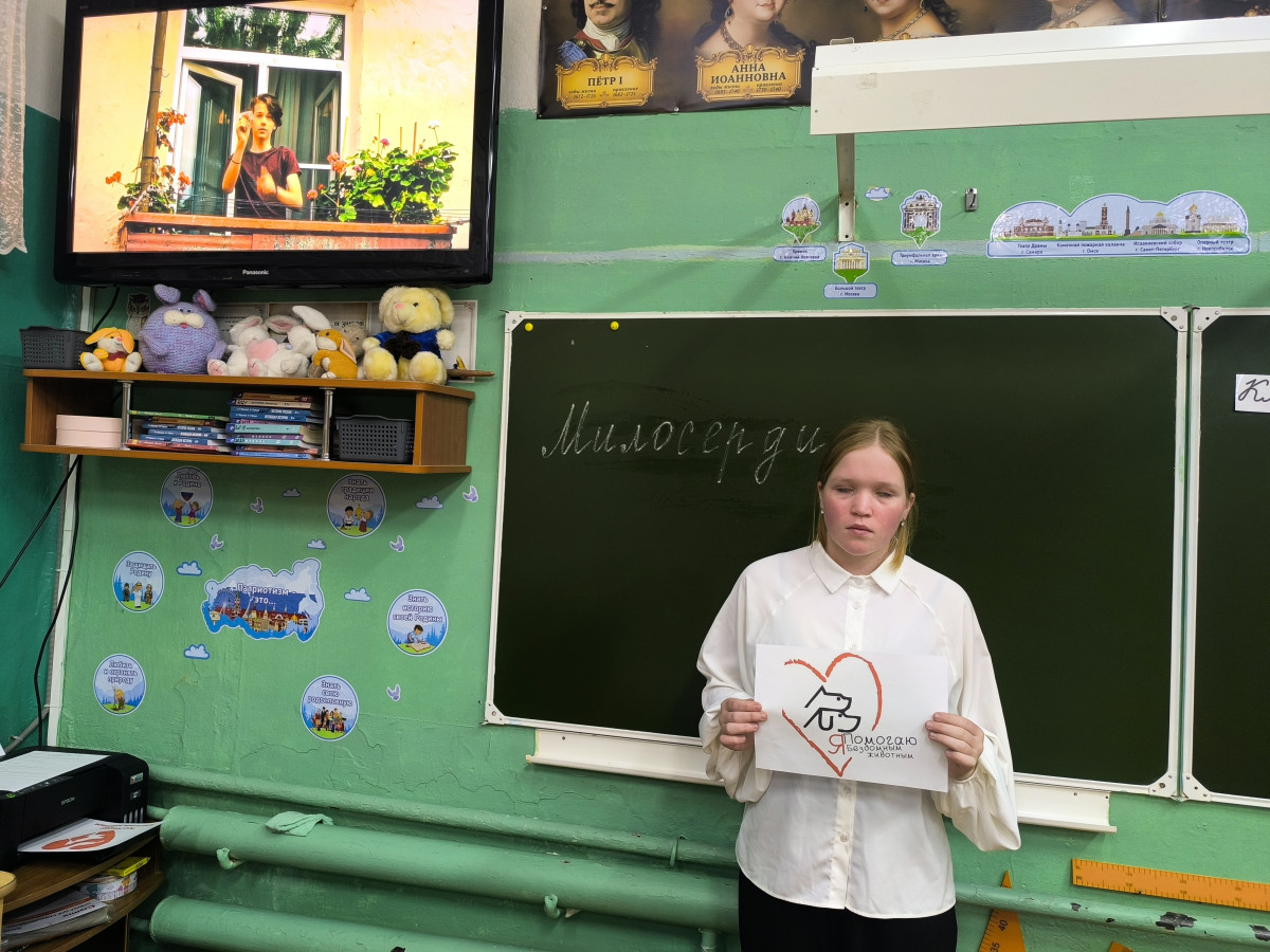 В начале октября ученики 9 ИН в рамках Киноурока посмотрели и обсудили фильм "Музыка внутри нас, Тема киноурока милосердие. Ученики пришли к выводу, что тема актуальная и решили принять участие в акции «Коробка добра» помощи бездомным животным из приюта. Обучающиеся и их родители собрали корм для животных и отнесли его в приют для животных. Работники были рады такому поступку ребят. Обучающиеся были горды своим поступком и сделали вывод, что помогать и быть милосердным -это лучшее . что может быть в человеке!.