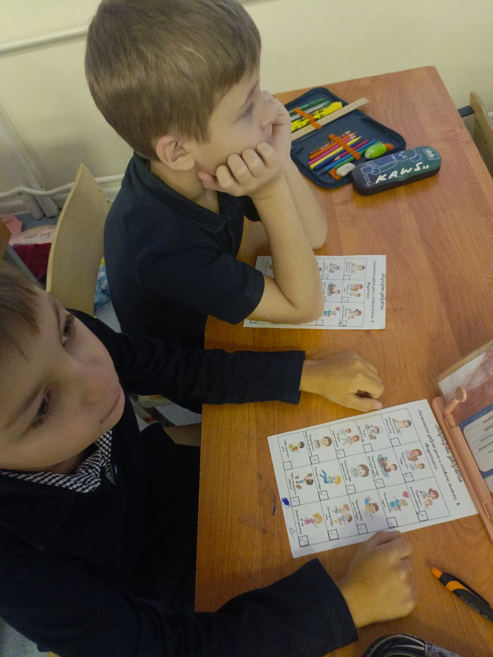 После обсуждения ученики нарисовали рисунки - какой бы выбор сделали они. При чём изобразить художественно свой выбор - это была одна из сложных задач, поставленных перед третьеклассниками. Ребята использовали "тайный язык" живописи. То есть сначала задумались о том, как бы они поступили, потом какой выбор правильный, а далее попытались с помощью бумаги и цветных карандашей изобразить свой выбор. Каждый ученик получил чек-лист Мои добрые дела. Договорились, что будут ежедневно выполнять дела и отмечать галочками (например, улыбнись однокласснику, поделись чем-нибудь с другим, дай "пять" и т.д.