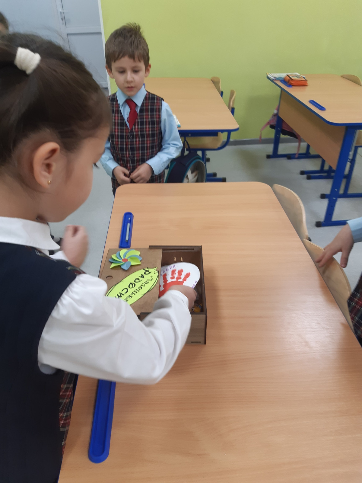 В ходе данного разговора возникла идея: дарить маленькие радости своим одноклассникам. Для этого нашли шкатулку, украсили её. И каждое утро дети клали в неё «маленькие радости»: рисунок, сувенир, сладости. В конце недели ребята с радостью выбирали понравившийся подарок.